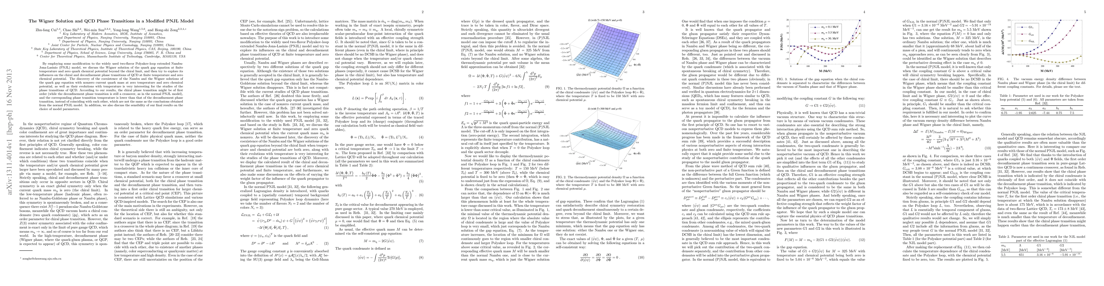 This paper explores modifications to the PNJL model to study the Wigner solution in the quark gap equation and its impact on QCD phase transitions. It finds that the chiral phase transition may be first-order, while the deconfinement phase remains a crossover, differing from the standard PNJL model results.