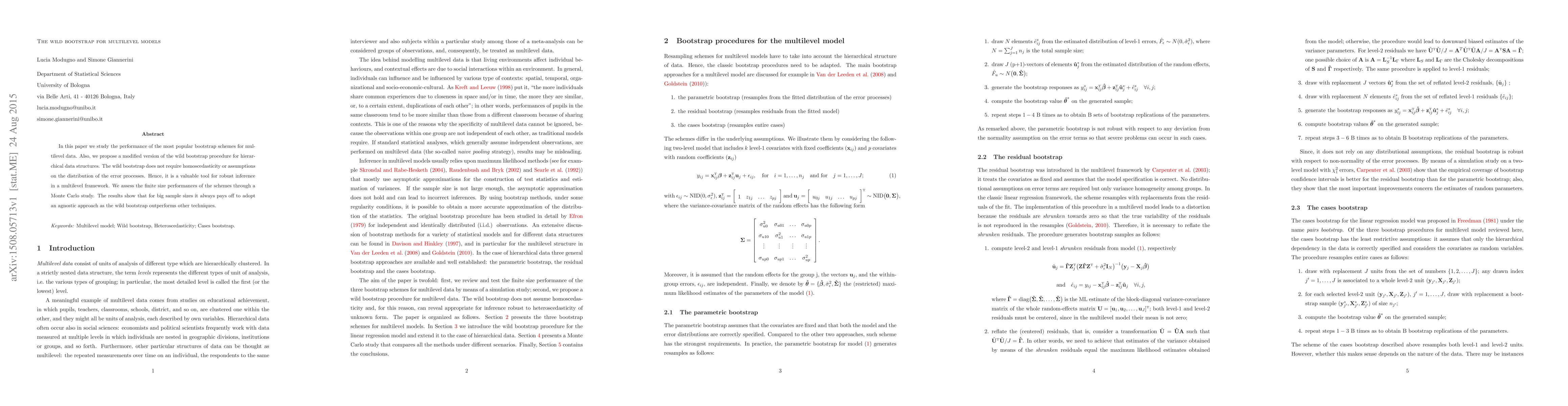 This paper evaluates various bootstrap methods for multilevel data and introduces a modified wild bootstrap procedure that does not require homoscedasticity or specific error distribution assumptions, proving superior in performance for large sample sizes through a Monte Carlo study.