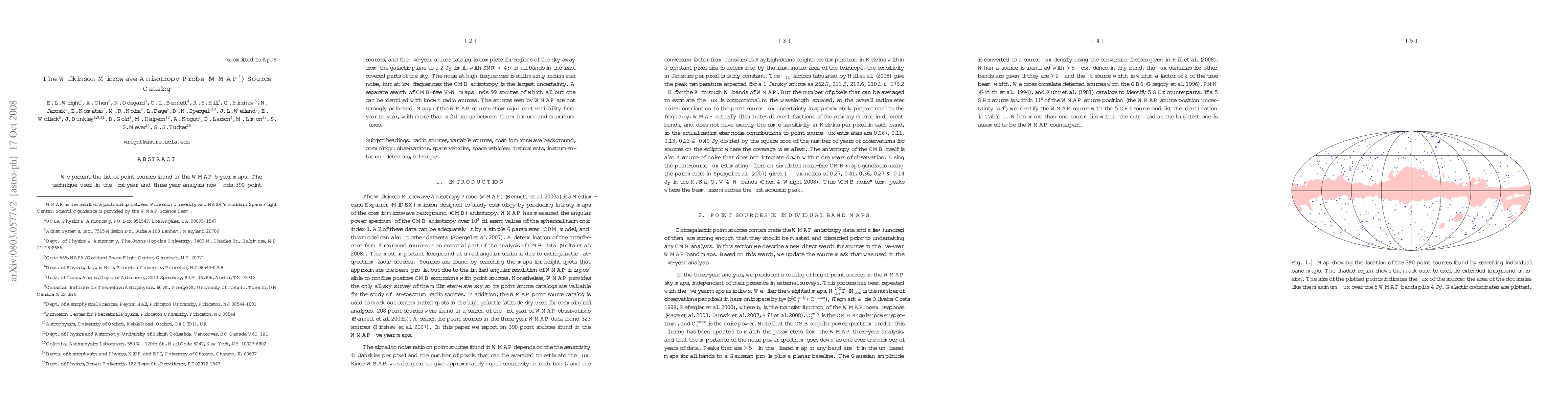 We present the list of point sources found in the WMAP 5-year maps. The technique used in the first-year and three-year analysis now finds 390 point sources, and the five-year source catalog is complete for regions of the sky away from the galactic plane to a 2 Jy limit, with SNR > 4.7 in all bands in the least covered parts of the sky. The noise at high frequencies is still mainly radiometer noise, but at low frequencies the CMB anisotropy is the largest uncertainty. A separate search of CMB-free V-W maps finds 99 sources of which all but one can be identified with known radio sources. The sources seen by WMAP are not strongly polarized. Many of the WMAP sources show significant variability from year to year, with more than a 2:1 range between the minimum and maximum fluxes.
