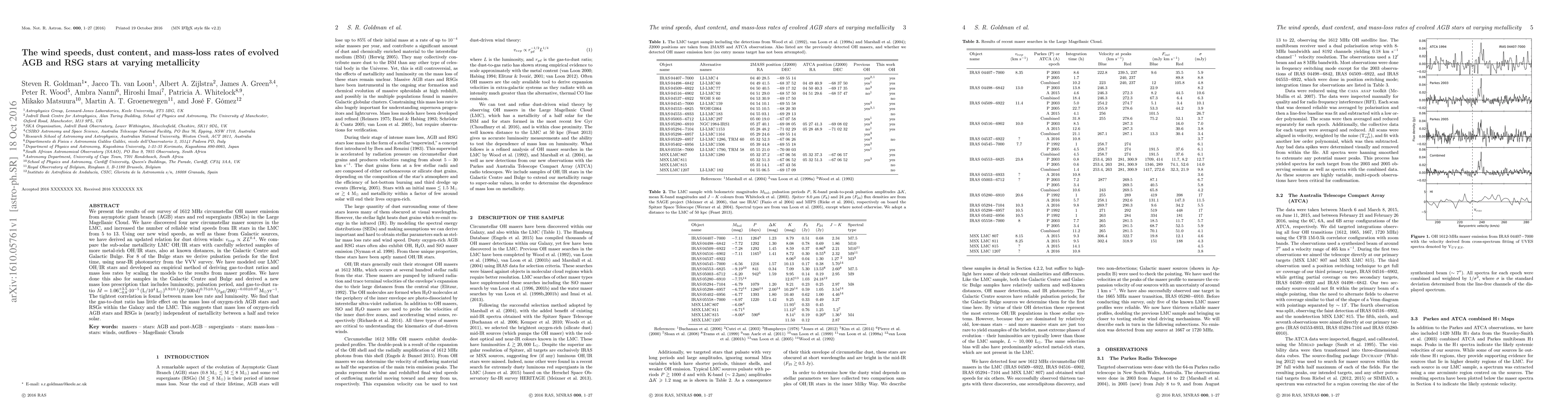 This study investigates wind speeds, dust content, and mass-loss rates of evolved AGB and RSG stars across varying metallicities, using OH maser emission surveys in the LMC. The research proposes a new mass loss prescription correlating mass loss to luminosity, pulsation period, and gas-to-dust ratio, with minimal dependence on metallicity for oxygen-rich stars.