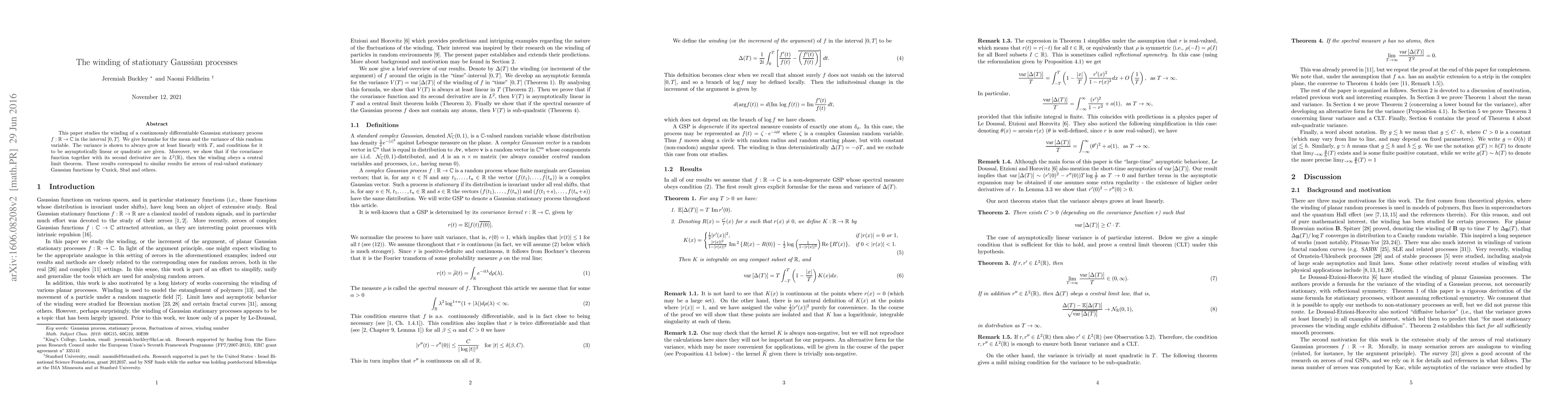 This paper investigates the winding of a continuously differentiable Gaussian stationary process over the interval $[0,T]$, providing formulas for its mean and variance. It demonstrates that the variance grows at least linearly with $T$, and identifies conditions for linear or quadratic asymptotic growth.