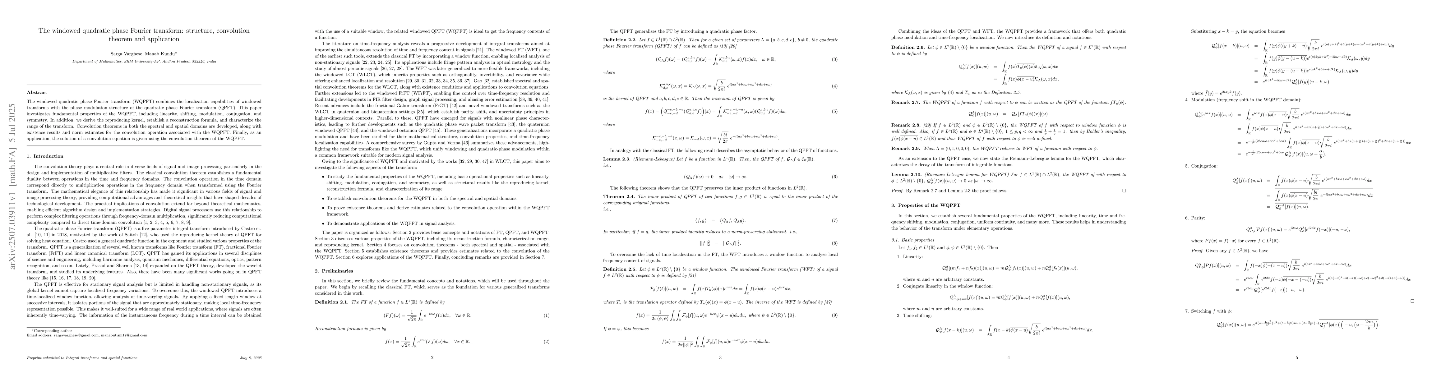 The windowed quadratic phase Fourier transform (WQPFT) combines the localization capabilities of windowed transforms with the phase modulation structure of the quadratic phase Fourier transform (QPFT). This paper investigates fundamental properties of the WQPFT, including linearity, shifting, modulation, conjugation, and symmetry. In addition, we derive the reproducing kernel, establish a reconstruction formula, and characterize the range of the transform. Convolution theorems in both the spectral and spatial domains are developed, along with the existence results and norm estimates for the convolution operation associated with the WQPFT. Finally, as an application, the solution of a convolution equation is given using the convolution theorem of the WQPFT.