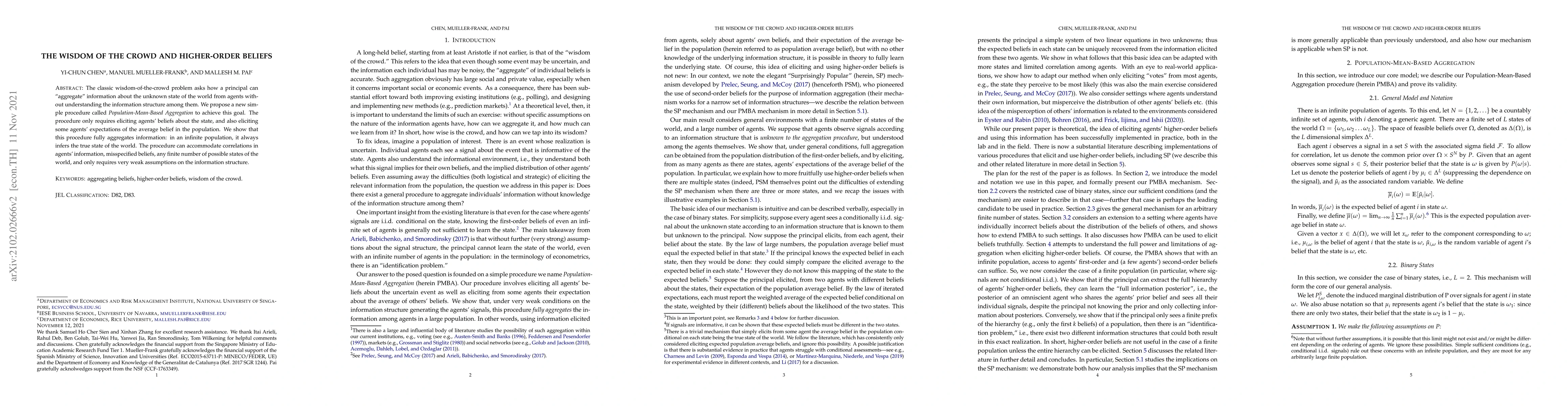 The classic wisdom-of-the-crowd problem asks how a principal can "aggregate" information about the unknown state of the world from agents without understanding the information structure among them. We propose a new simple procedure called Population-Mean-Based Aggregation to achieve this goal. The procedure only requires eliciting agents' beliefs about the state, and also eliciting some agents' expectations of the average belief in the population. We show that this procedure fully aggregates information: in an infinite population, it always infers the true state of the world. The procedure can accommodate correlations in agents' information, misspecified beliefs, any finite number of possible states of the world, and only requires very weak assumptions on the information structure.