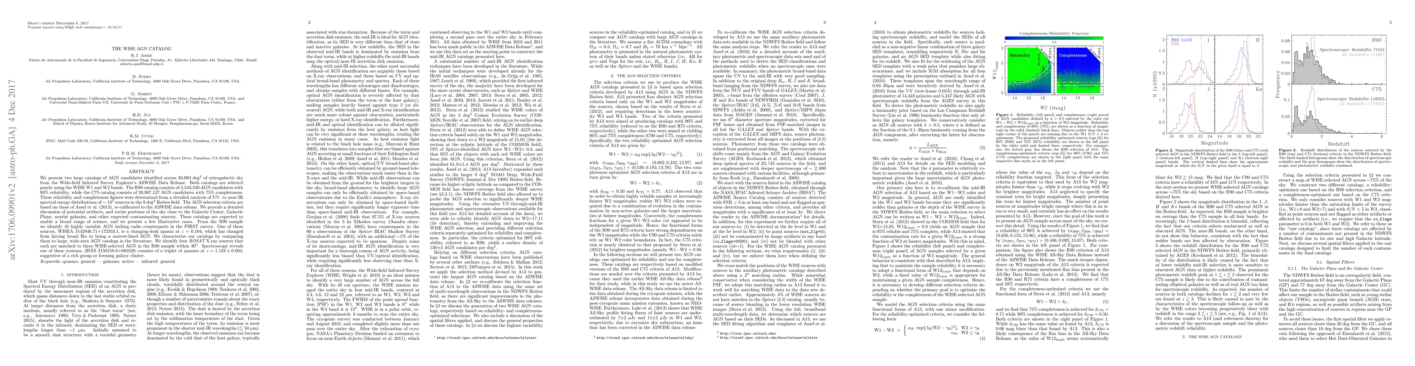 The WISE AGN Catalog presents two large mid-IR AGN candidate catalogs from the AllWISE Data Release, emphasizing either reliability (R90) or completeness (C75). These catalogs cover ~30,093 deg^2 of extragalactic sky and are expected to facilitate diverse scientific investigations.