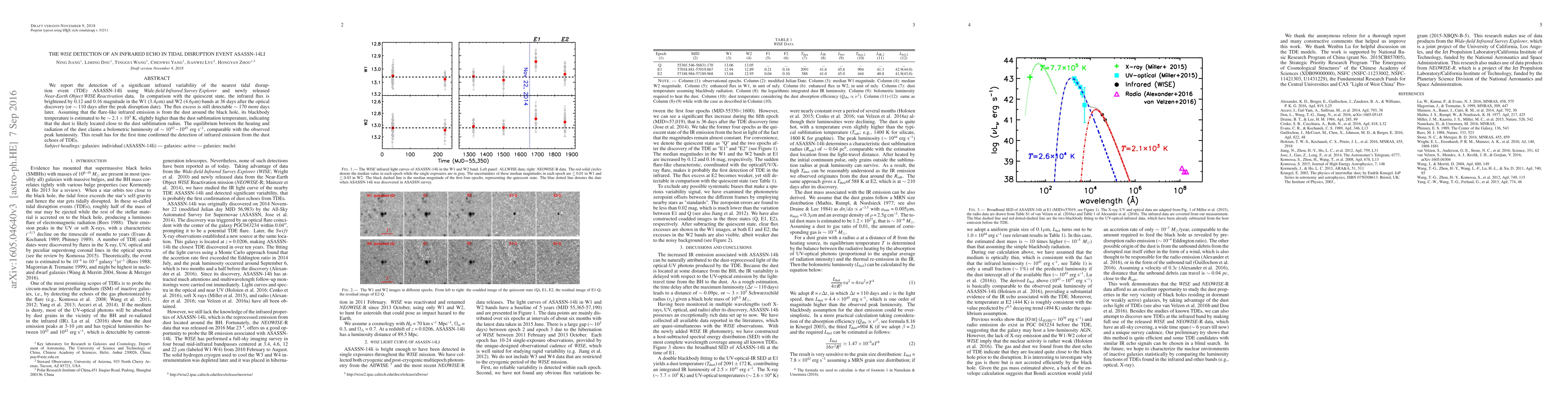 This paper reports significant infrared variability in the tidal disruption event ASASSN-14li detected by WISE, showing a brightening of 0.12 and 0.16 magnitudes in the W1 and W2 bands 110 days post disruption. The infrared emission suggests dust close to the black hole's sublimation radius, with a bolometric luminosity of $10^{43}-10^{45}$~\lum.