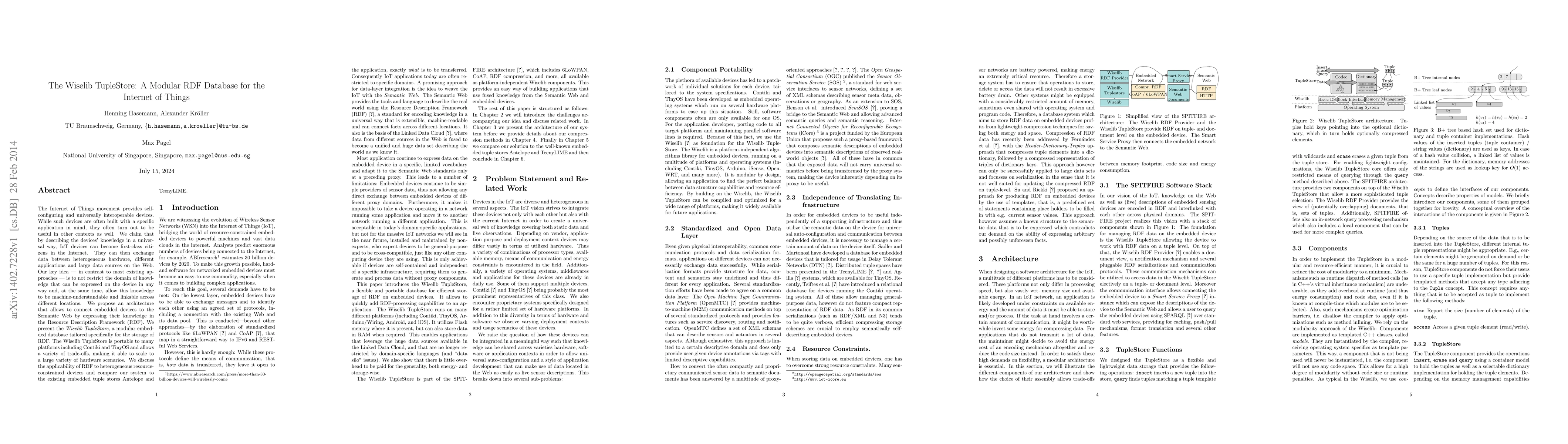 The Internet of Things movement provides self-configuring and universally interoperable devices. While such devices are often built with a specific application in mind, they often turn out to be useful in other contexts as well. We claim that by describing the devices' knowledge in a universal way, IoT devices can become first-class citizens in the Internet. They can then exchange data between heterogeneous hardware, different applications and large data sources on the Web. Our key idea --- in contrast to most existing approaches --- is to not restrict the domain of knowledge that can be expressed on the device in any way and, at the same time, allow this knowledge to be machine-understandable and linkable across different locations. We propose an architecture that allows to connect embedded devices to the Semantic Web by expressing their knowledge in the Resource Description Framework (RDF). We present the Wiselib TupleStore, a modular embedded database tailored specifically for the storage of RDF. The Wiselib TupleStore is portable to many platforms including Contiki and TinyOS and allows a variety of trade-offs, making it able to scale to a large variety of hardware scenarios. We discuss the applicability of RDF to heterogeneous resource-constrained devices and compare our system to the existing embedded tuple stores Antelope and TeenyLIME.