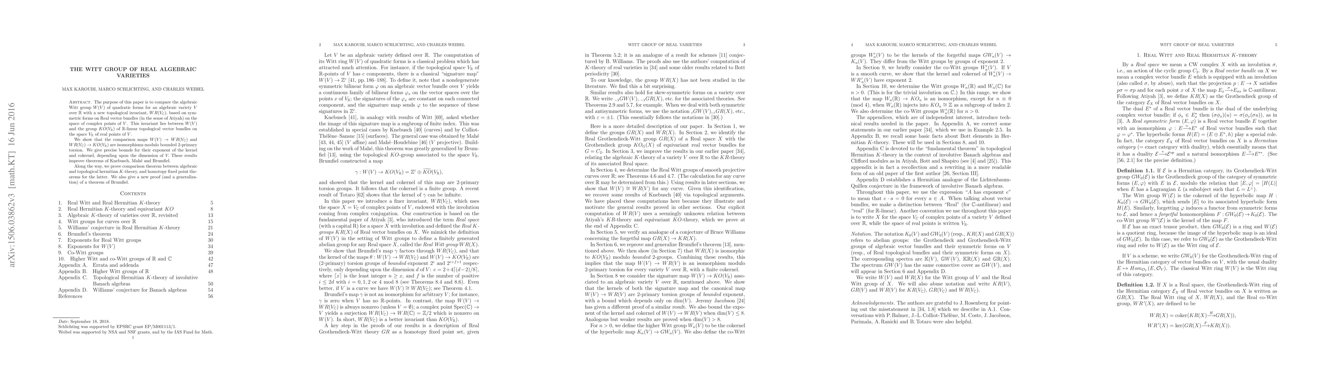 This paper establishes isomorphisms between the algebraic Witt group of a real algebraic variety and a topological invariant based on symmetric forms on Real vector bundles, modulo bounded 2-primary torsion. It also provides precise bounds for the kernel and cokernel of these maps, improving previous theorems. The study further introduces a comparison theorem between algebraic and topological Hermitian K-theory, and proves homotopy fixed point theorems. A generalized theorem of Brumfiel is also presented with a new proof.