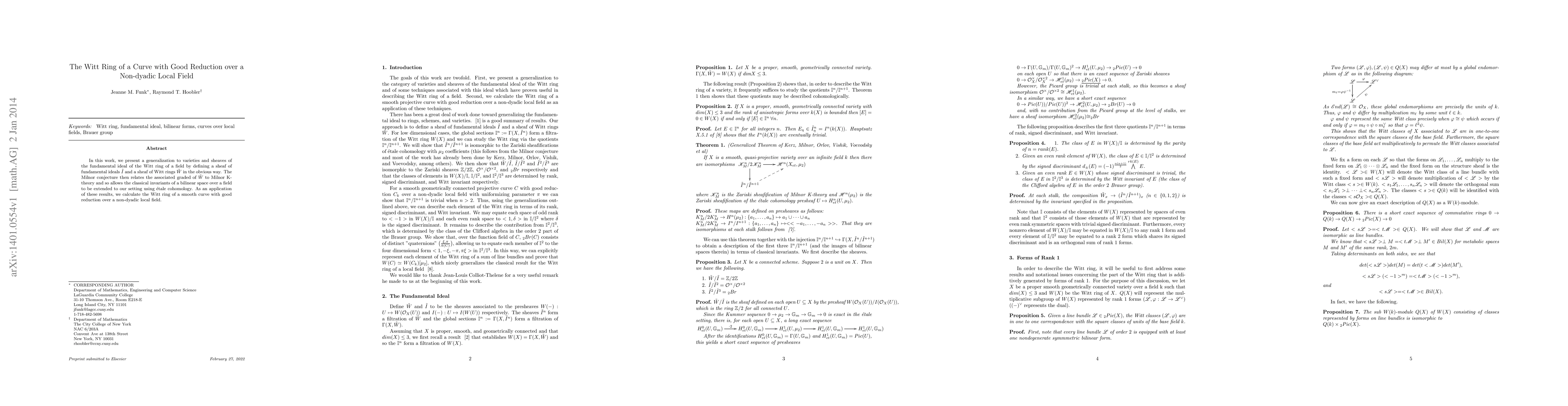 In this work, we present a generalization to varieties and sheaves of the fundamental ideal of the Witt ring of a field by defining a sheaf of fundamental ideals $\tilde{I}$ and a sheaf of Witt rings $\tilde{W}$ in the obvious way. The Milnor conjecture then relates the associated graded of $\tilde{W}$ to Milnor K-theory and so allows the classical invariants of a bilinear space over a field to be extended to our setting using \'etale cohomology. As an application of these results, we calculate the Witt ring of a smooth curve with good reduction over a non-dyadic local field.