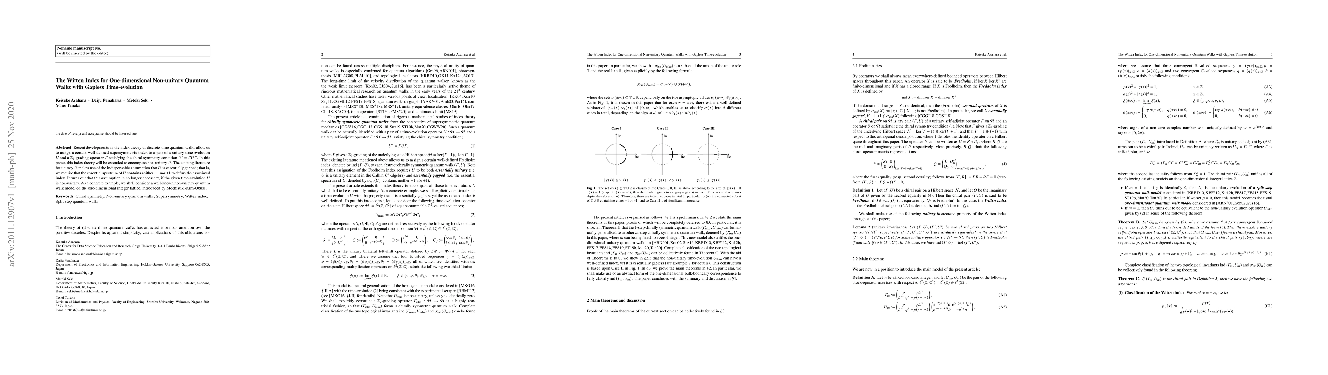 This paper extends index theory for discrete-time quantum walks to non-unitary time-evolution, eliminating the assumption of essential gappedness in unitary U. It explores a one-dimensional non-unitary quantum walk model as an example.