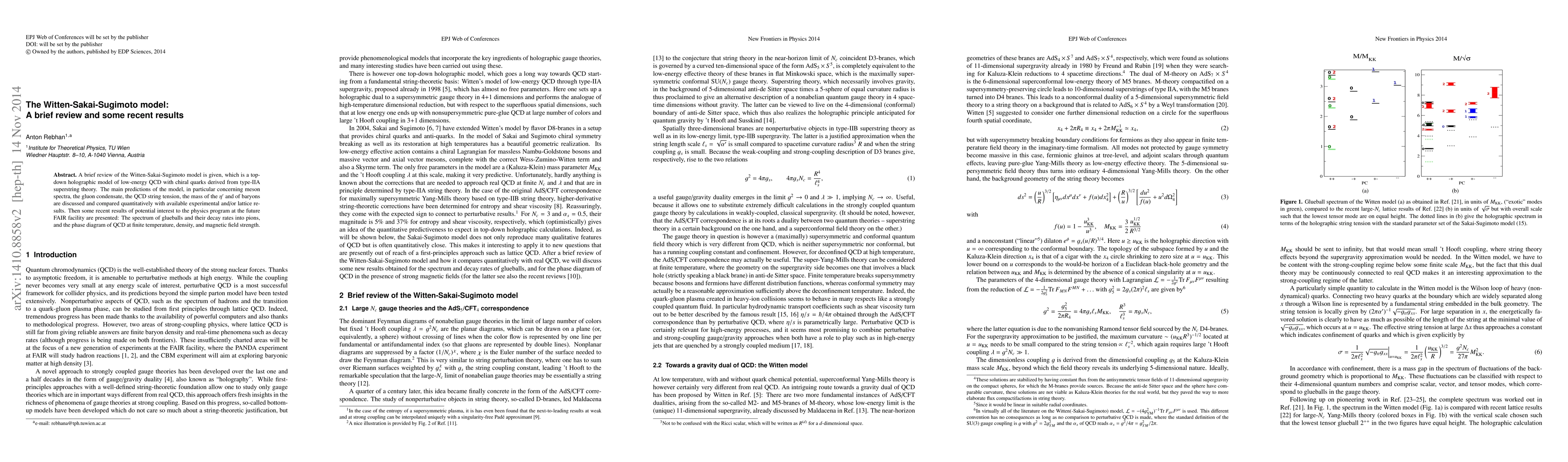 A brief review of the Witten-Sakai-Sugimoto model is given, which is a top-down holographic model of low-energy QCD with chiral quarks derived from type-IIA superstring theory. The main predictions of the model, in particular concerning meson spectra, the gluon condensate, the QCD string tension, the mass of the $\eta'$ and of baryons are discussed and compared quantitatively with available experimental and/or lattice results. Then some recent results of potential interest to the physics program at the future FAIR facility are presented: The spectrum of glueballs and their decay rates into pions, and the phase diagram of QCD at finite temperature, density, and magnetic field strength.