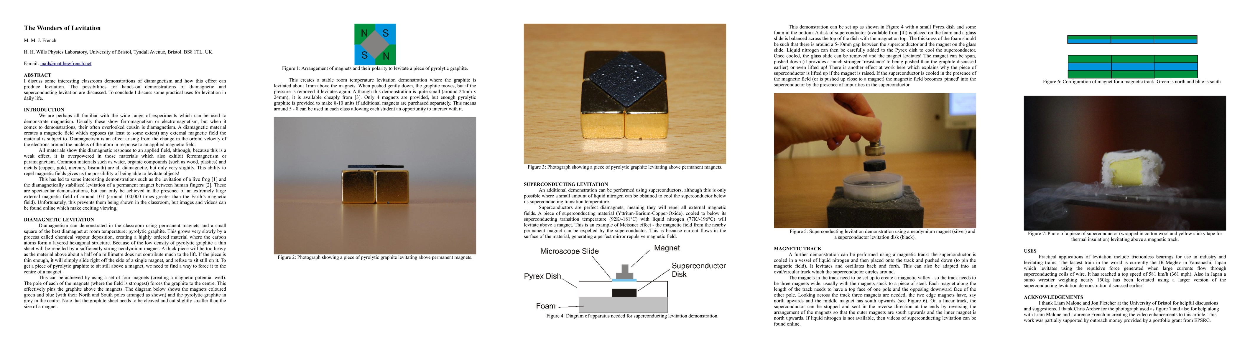 This paper explores classroom demonstrations of diamagnetism, showcasing how it can produce levitation through hands-on experiments. It also examines practical applications of levitation in everyday life.