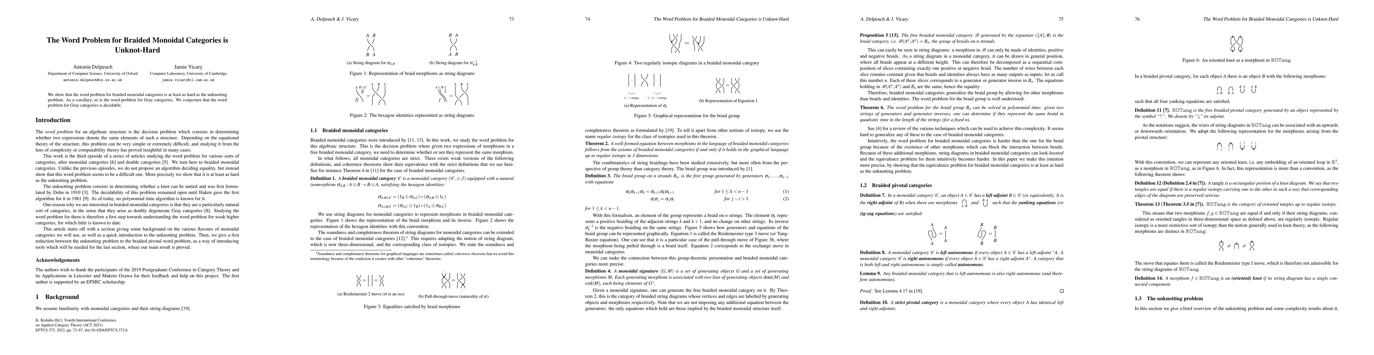 We show that the word problem for braided monoidal categories is at least as hard as the unknotting problem. As a corollary, so is the word problem for Gray categories. We conjecture that the word problem for Gray categories is decidable.