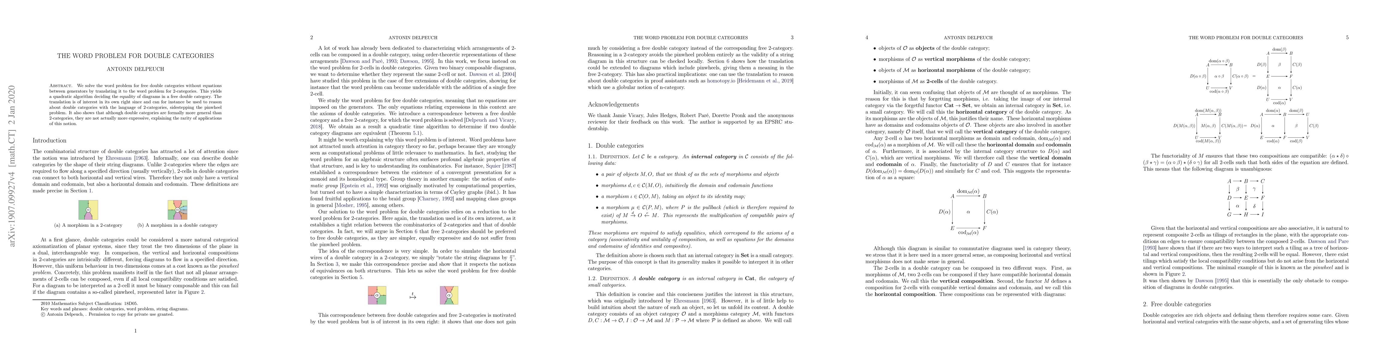 We solve the word problem for free double categories without equations between generators by translating it to the word problem for 2-categories. This yields a quadratic algorithm deciding the equality of diagrams in a free double category. The translation is of interest in its own right since and can for instance be used to reason about double categories with the language of 2-categories, sidestepping the pinwheel problem. It also shows that although double categories are formally more general than 2-categories, they are not actually more expressive, explaining the rarity of applications of this notion.