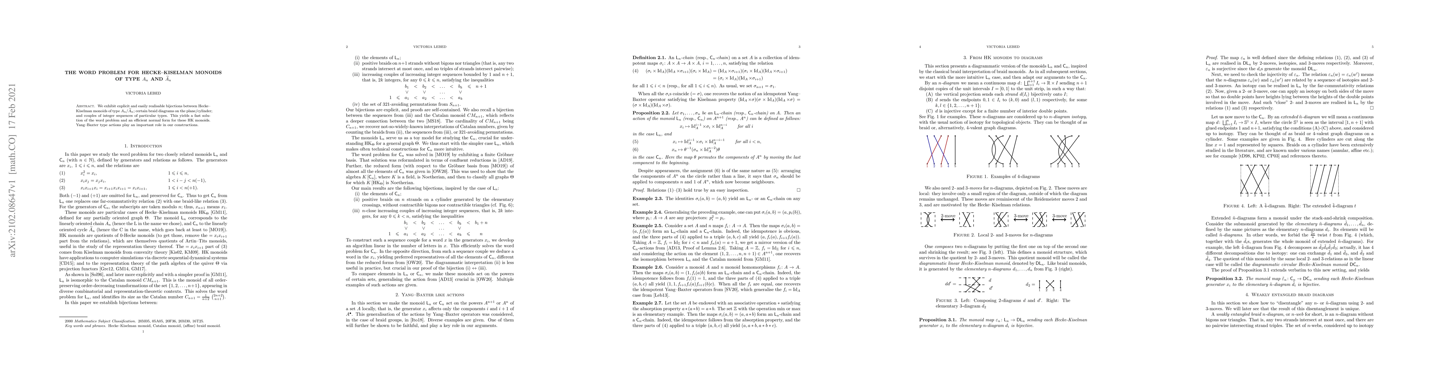 This paper presents explicit bijections between Hecke-Kiselman monoids of types $A_n$ and $\widetilde{A}_n$, braid diagrams, and specific integer sequences, enabling a fast solution to the word problem and an efficient normal form for these monoids. Yang-Baxter type actions are crucial to the constructions.