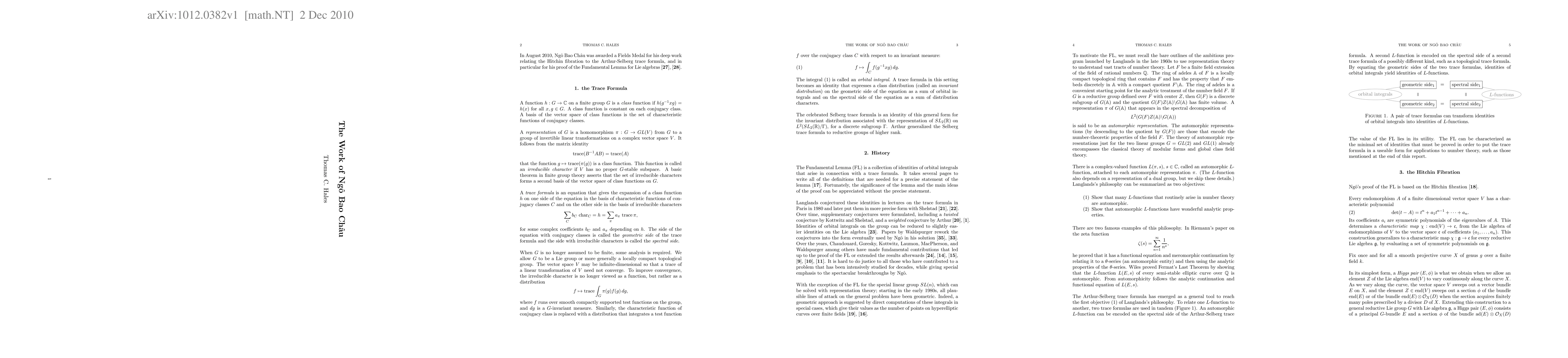 Ngo Bao Chau's work involves relating the Hitchin fibration to the Arthur-Selberg trace formula, leading to a proof of the Fundamental Lemma for Lie algebras and earning him a Fields Medal in 2010.