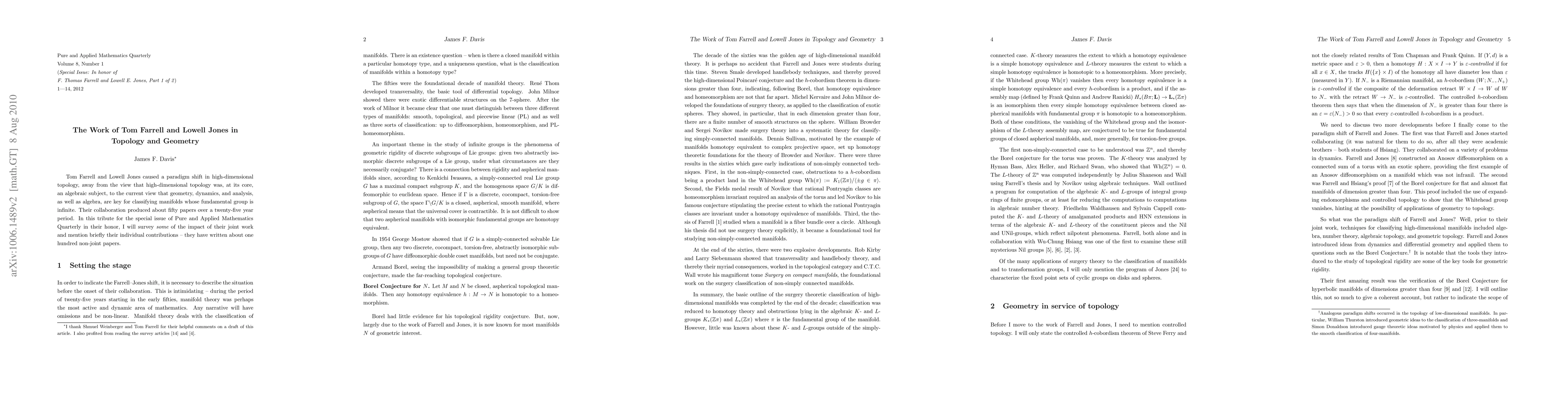 This is a survey of some of the work of Tom Farrell and Lowell Jones. This is the lead article of a special issue of the Pure and Applied Mathematics Quarterly. This issue is published in conjunction with the conference "Geometry,Topology, and their Interactions" held in Morelia, Mexico.