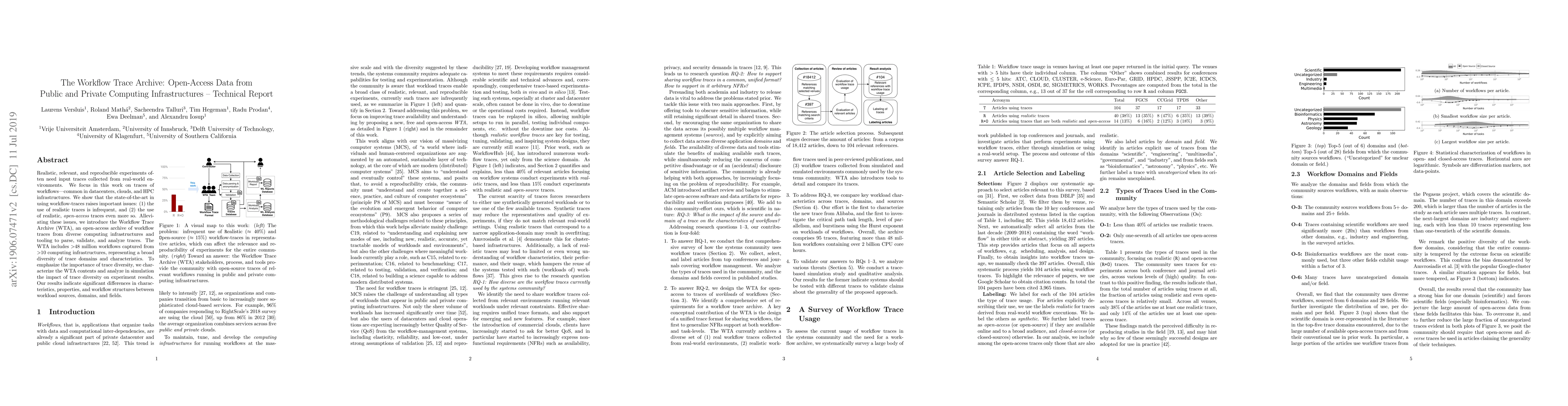 The Workflow Trace Archive (WTA) offers open-access workflow traces from various computing environments, addressing the lack of realistic and open-access traces. The WTA contains over 48 million workflows from more than 10 infrastructures, demonstrating significant differences in workload characteristics across diverse domains.