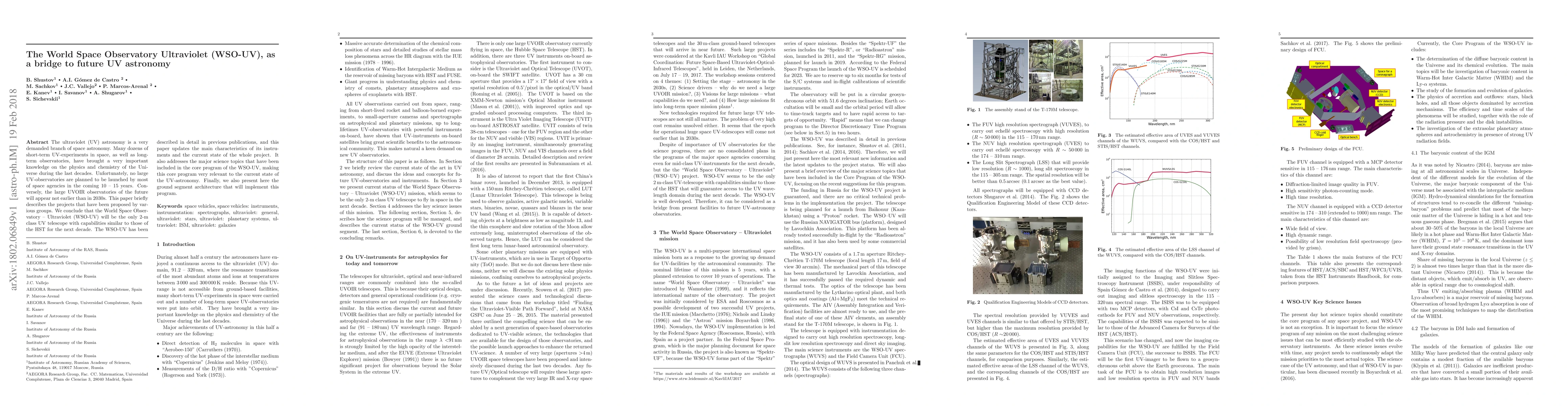 The WSO-UV project proposes a 2-m class UV telescope with capabilities similar to HST for the next decade, filling a gap in UV astronomy until large UVOIR observatories launch in the 2030s.