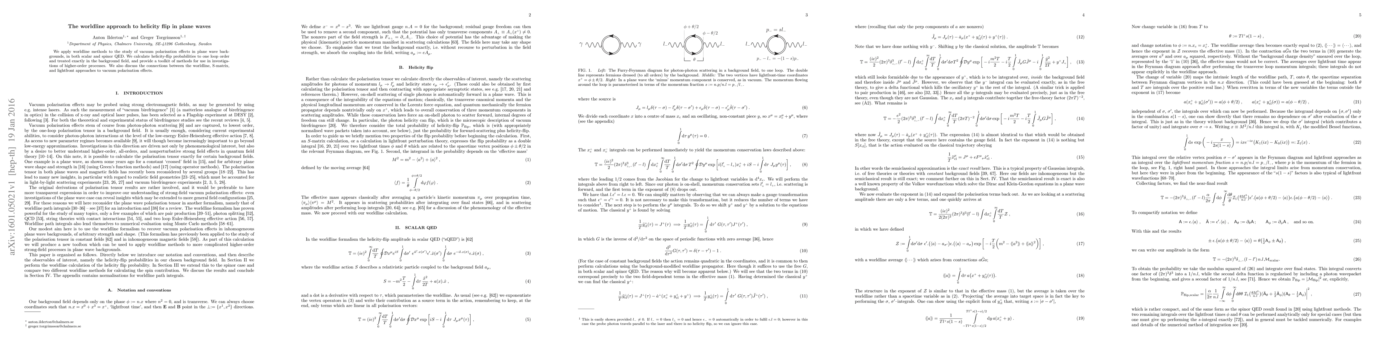 We apply worldline methods to the study of vacuum polarisation effects in plane wave backgrounds, in both scalar and spinor QED. We calculate helicity-flip probabilities to one loop order and treated exactly in the background field, and provide a toolkit of methods for use in investigations of higher-order processes. We also discuss the connections between the worldline, S-matrix, and lightfront approaches to vacuum polarisation effects.