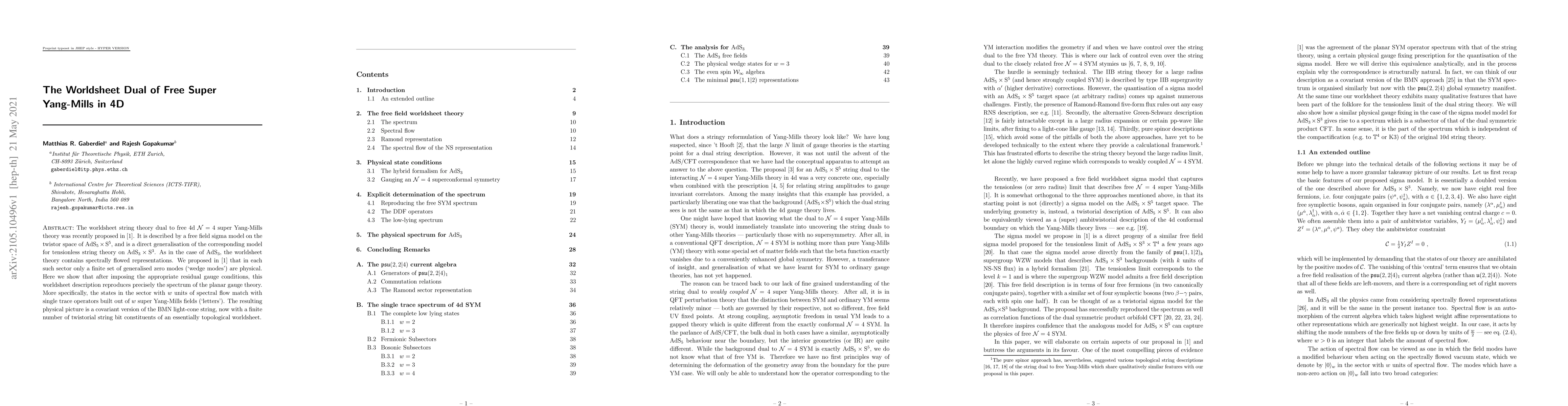 The worldsheet string theory dual to free 4d ${\cal N}=4$ super Yang-Mills theory was recently proposed in arXiv:2104.08263. It is described by a free field sigma model on the twistor space of ${\rm AdS}_5\times {\rm S}^5$, and is a direct generalisation of the corresponding model for tensionless string theory on ${\rm AdS}_3\times {\rm S}^3$. As in the case of ${\rm AdS}_3$, the worldsheet theory contains spectrally flowed representations. We proposed in arXiv:2104.08263 that in each such sector only a finite set of generalised zero modes (`wedge modes') are physical. Here we show that after imposing the appropriate residual gauge conditions, this worldsheet description reproduces precisely the spectrum of the planar gauge theory. More specifically, the states in the sector with $w$ units of spectral flow match with single trace operators built out of $w$ super Yang-Mills fields (`letters'). The resulting physical picture is a covariant version of the BMN light-cone string, now with a finite number of twistorial string bit constituents of an essentially topological worldsheet.