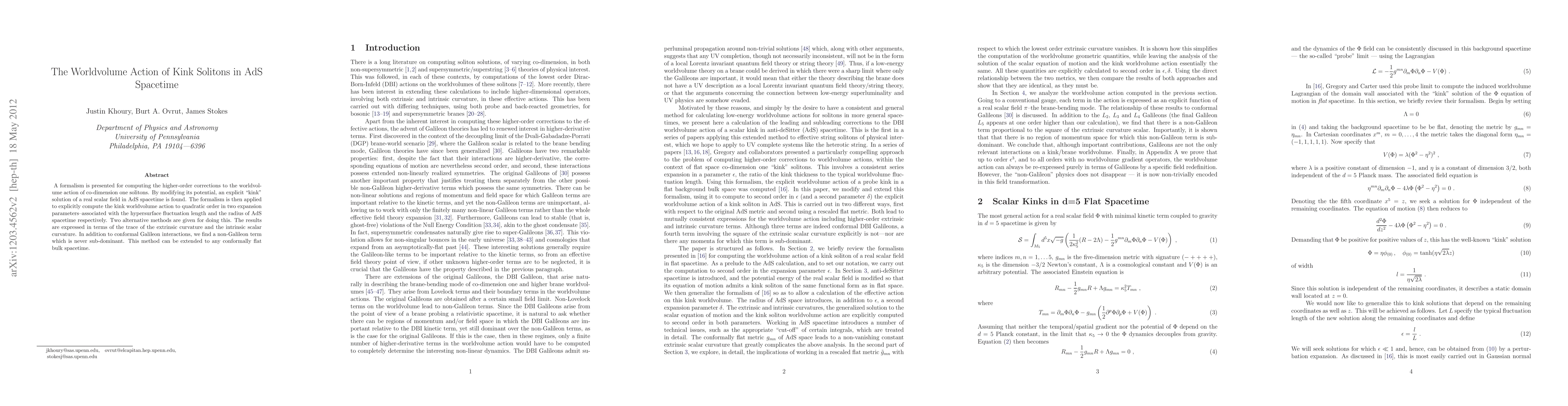 A formalism is presented for computing the higher-order corrections to the worldvolume action of co-dimension one solitons. By modifying its potential, an explicit "kink" solution of a real scalar field in AdS spacetime is found. The formalism is then applied to explicitly compute the kink worldvolume action to quadratic order in two expansion parameters--associated with the hypersurface fluctuation length and the radius of AdS spacetime respectively. Two alternative methods are given for doing this. The results are expressed in terms of the trace of the extrinsic curvature and the intrinsic scalar curvature. In addition to conformal Galileon interactions, we find a non-Galileon term which is never sub-dominant. This method can be extended to any conformally flat bulk spacetime.