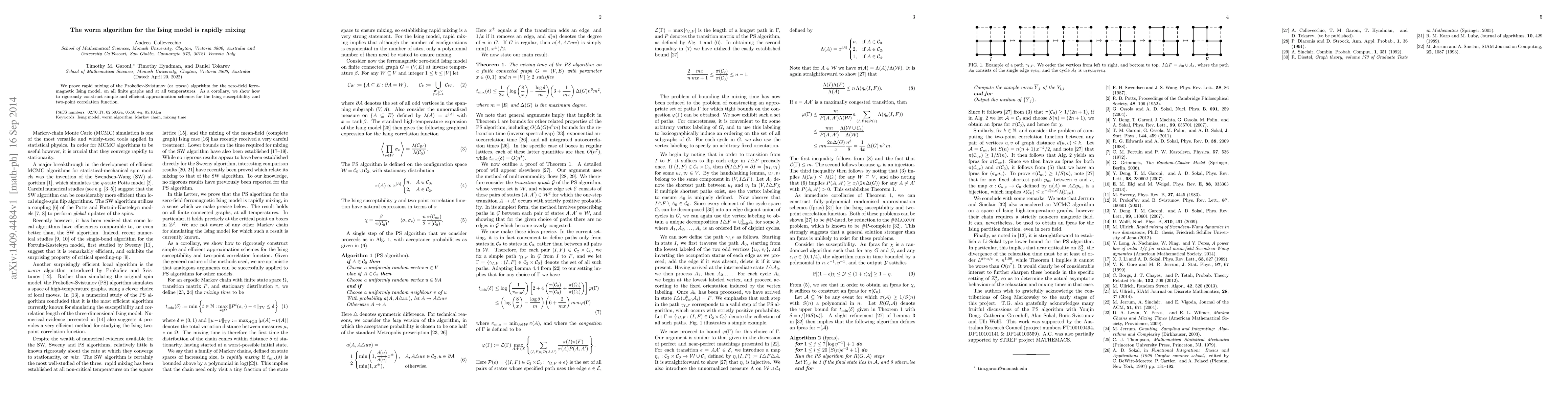 The paper proves rapid mixing for the worm algorithm in the zero-field ferromagnetic Ising model across all finite graphs and temperatures. It also demonstrates the construction of efficient approximation schemes for the Ising susceptibility and two-point correlation function.