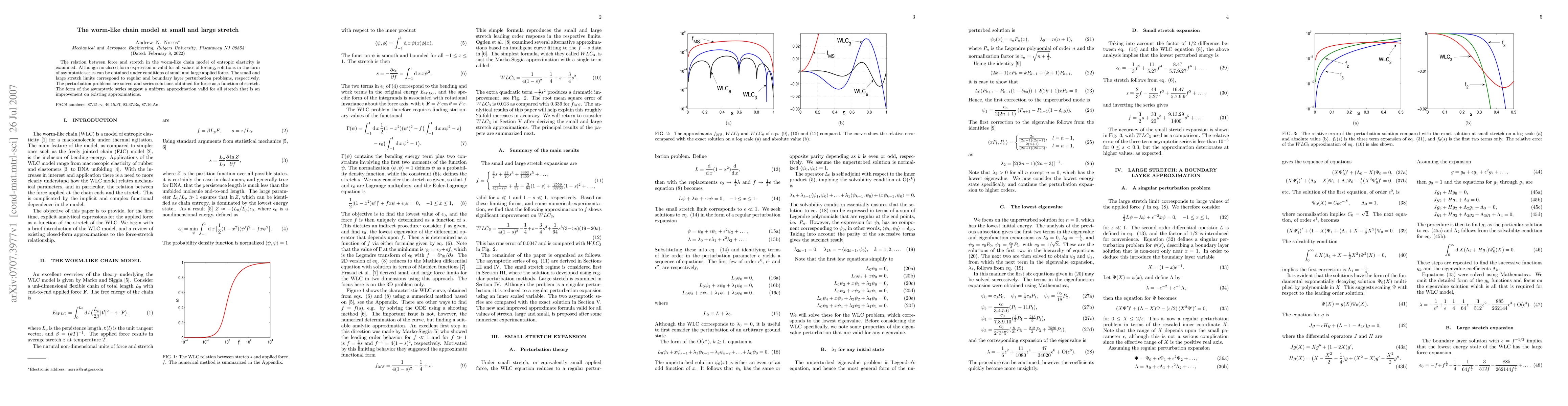 Researchers developed an asymptotic series solution for the worm-like chain model of entropic elasticity under small and large applied force conditions, providing a more accurate approximation than existing methods.