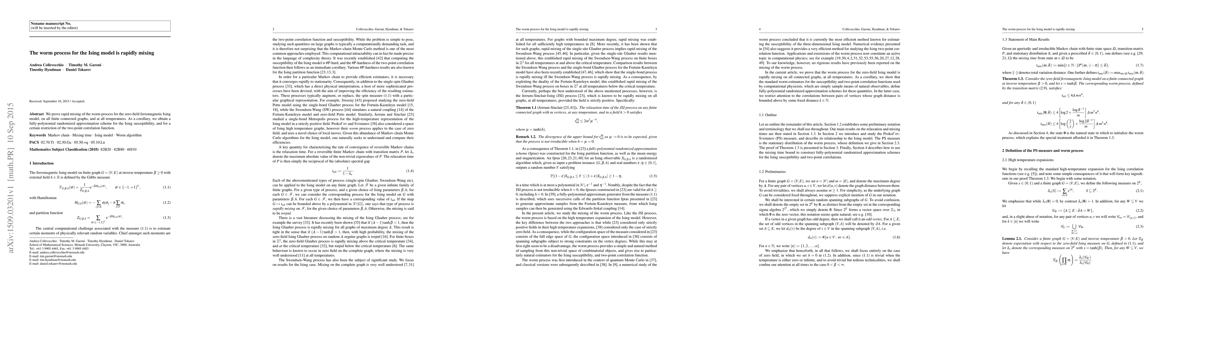 The paper proves rapid mixing of the worm process in the zero-field ferromagnetic Ising model across all finite connected graphs and temperatures. This result leads to a fully-polynomial randomized approximation scheme for Ising susceptibility and a restricted two-point correlation function.