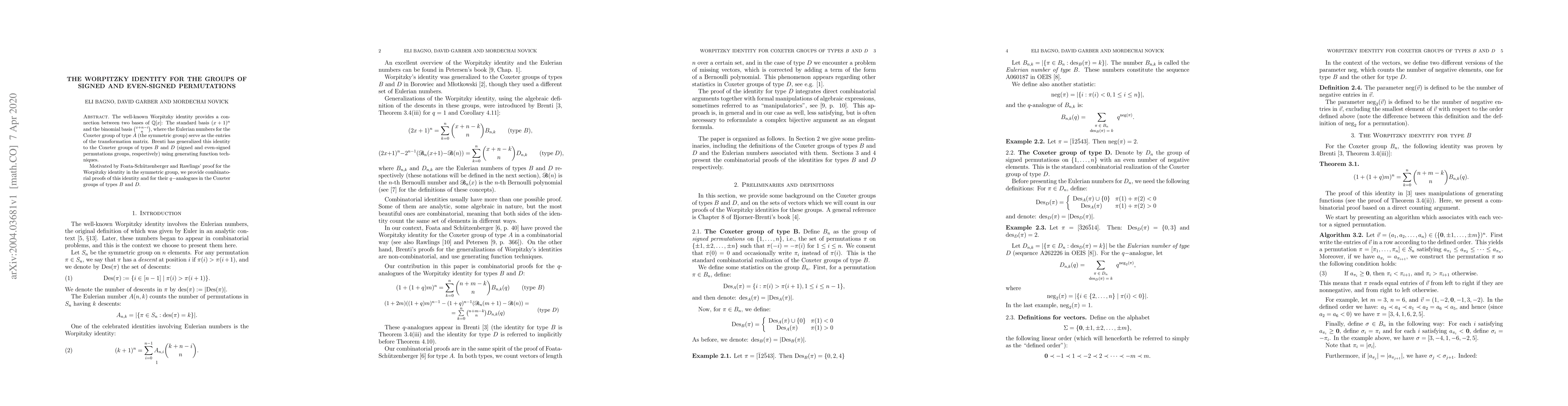 Researchers provide combinatorial proofs of a key identity in signed and even-signed permutations groups, connecting two bases of the polynomial ring.