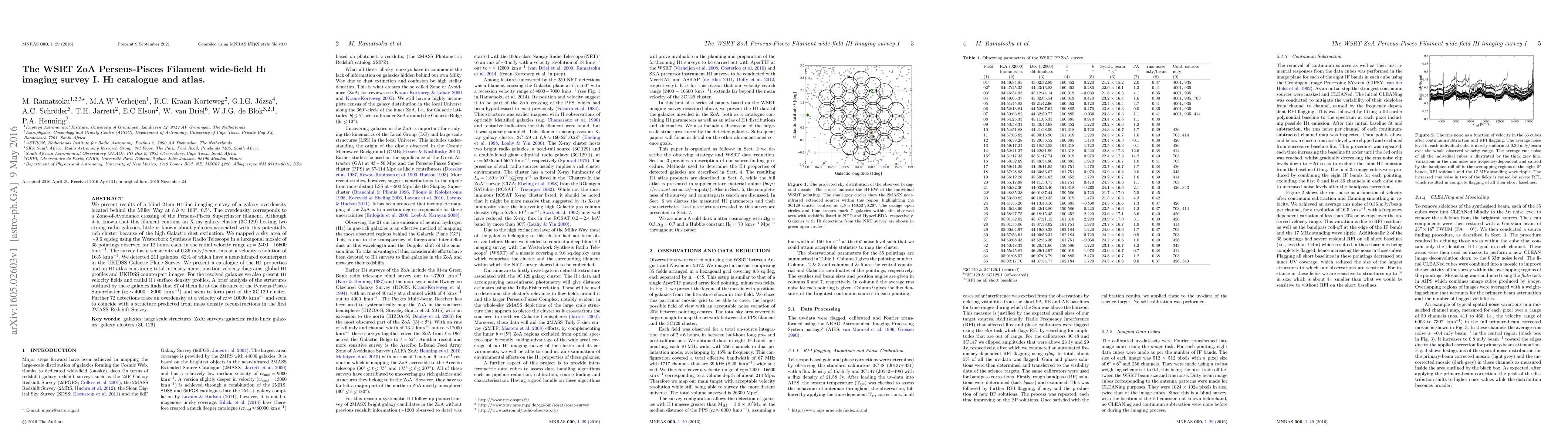 This paper reports on a blind HI-line imaging survey of a galaxy overdensity behind the Milky Way, revealing 211 galaxies in the Perseus-Pisces Supercluster filament. The study detected galaxies associated with the 3C129 cluster, providing an HI catalogue and atlas with detailed properties and images.