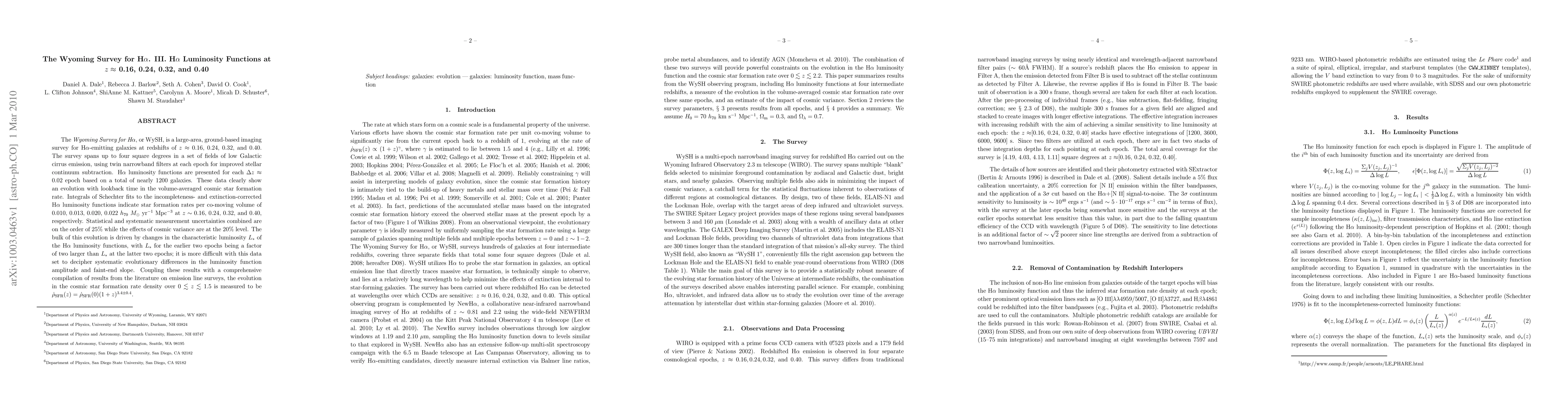 The Wyoming Survey for H-alpha, or WySH, is a large-area, ground-based imaging survey for H-alpha-emitting galaxies at redshifts of z ~ 0.16, 0.24, 0.32, and 0.40. The survey spans up to four square degrees in a set of fields of low Galactic cirrus emission, using twin narrowband filters at each epoch for improved stellar continuum subtraction. H-alpha luminosity functions are presented for each Delta(z) ~ 0.02 epoch based on a total of nearly 1200 galaxies. These data clearly show an evolution with lookback time in the volume-averaged cosmic star formation rate. Integrals of Schechter fits to the incompleteness- and extinction-corrected H-alpha luminosity functions indicate star formation rates per co-moving volume of 0.010, 0.013, 0.020, 0.022 h_70 M_sun yr^{-1} Mpc^{-3} at z ~ 0.16, 0.24, 0.32, and 0.40, respectively. Statistical and systematic measurement uncertainties combined are on the order of 25% while the effects of cosmic variance are at the 20% level. The bulk of this evolution is driven by changes in the characteristic luminosity L_* of the H-alpha luminosity functions, with L_* for the earlier two epochs being a factor of two larger than L_* at the latter two epochs; it is more difficult with this data set to decipher systematic evolutionary differences in the luminosity function amplitude and faint-end slope. Coupling these results with a comprehensive compilation of results from the literature on emission line surveys, the evolution in the cosmic star formation rate density over 0 < z < 1.5 is measured to be rho_dot_SFR(z) = rho_dot_SFR(0) (1+z)^{3.4+/-0.4}.