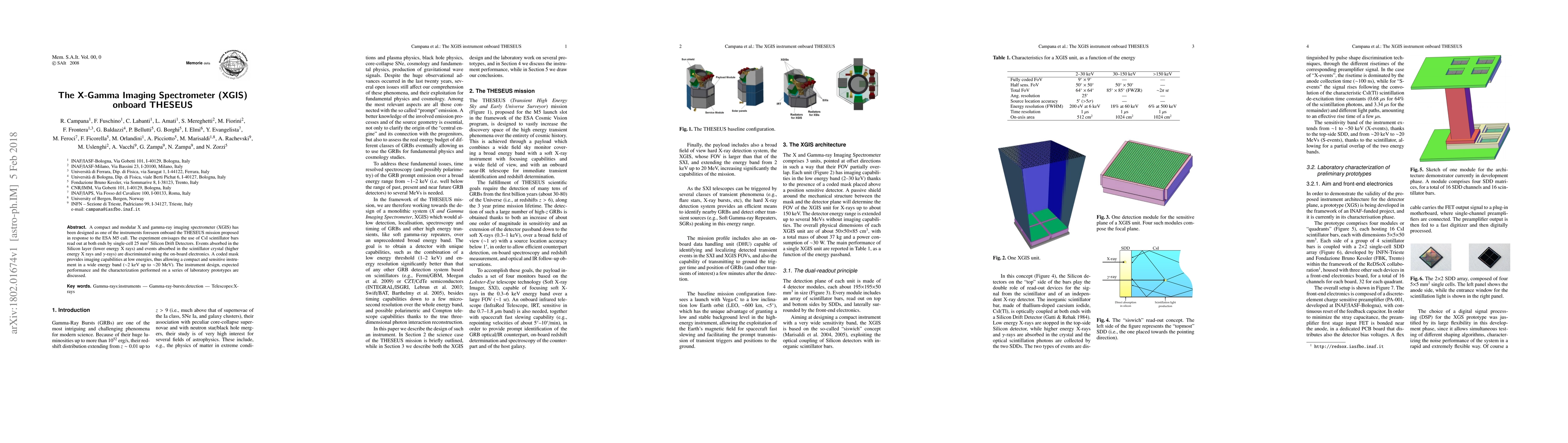 The XGIS spectrometer on the THESEUS mission uses CsI scintillator bars and Silicon Drift Detectors to image and discriminate X-rays and gamma-rays across a wide energy range (~2 keV to ~20 MeV). The design includes a coded mask for imaging and has been validated through laboratory prototypes.