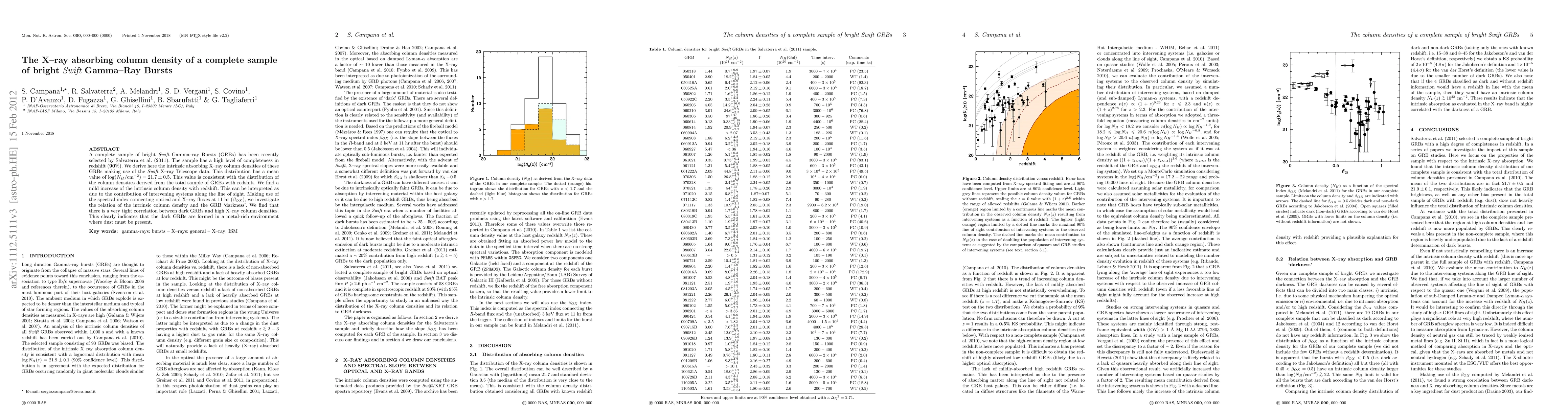 This study analyzes the intrinsic X-ray absorbing column densities of a complete sample of bright Swift Gamma-Ray Bursts (GRBs), revealing a mean value of log(NH/cm-2)=21.7±0.5. The research finds a correlation between dark GRBs and higher column densities, suggesting these bursts occur in metal-rich environments with significant dust presence.