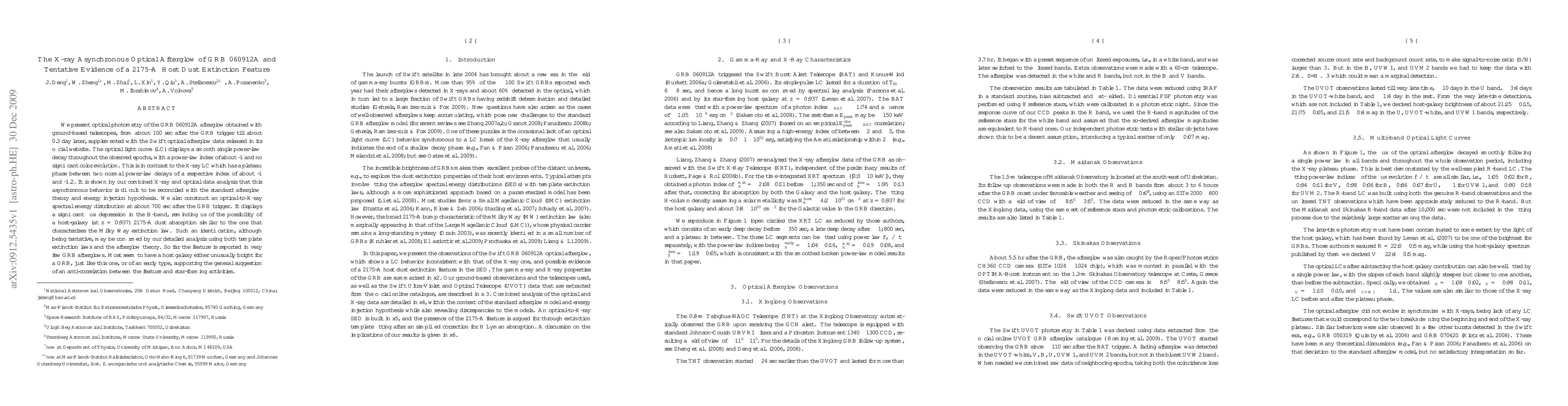 We present optical photometry of the GRB 060912A afterglow obtained with ground-based telescopes, from about 100 sec after the GRB trigger till about 0.3 day later, supplemented with the Swift optical afterglow data released in its official website. The optical light curve (LC) displays a smooth single power-law decay throughout the observed epochs, with a power-law index of about -1 and no significant color evolution. This is in contrast to the X-ray LC which has a plateau phase between two normal power-law decays of a respective index of about -1 and -1.2. It is shown by our combined X-ray and optical data analysis that this asynchronous behavior is difficult to be reconciled with the standard afterglow theory and energy injection hypothesis. We also construct an optical-to-X-ray spectral energy distribution at about 700 sec after the GRB trigger. It displays a significant flux depression in the B-band, reminding us of the possibility of a host-galaxy (at z=0.937) 2175-A dust absorption similar to the one that characterizes the Milky Way extinction law. Such an identification, although being tentative, may be confirmed by our detailed analysis using both template extinction laws and the afterglow theory. So far the feature is reported in very few GRB afterglows. Most seem to have a host galaxy either unusually bright for a GRB, just like this one, or of an early type, supporting the general suggestion of an anti-correlation between the feature and star-forming activities.