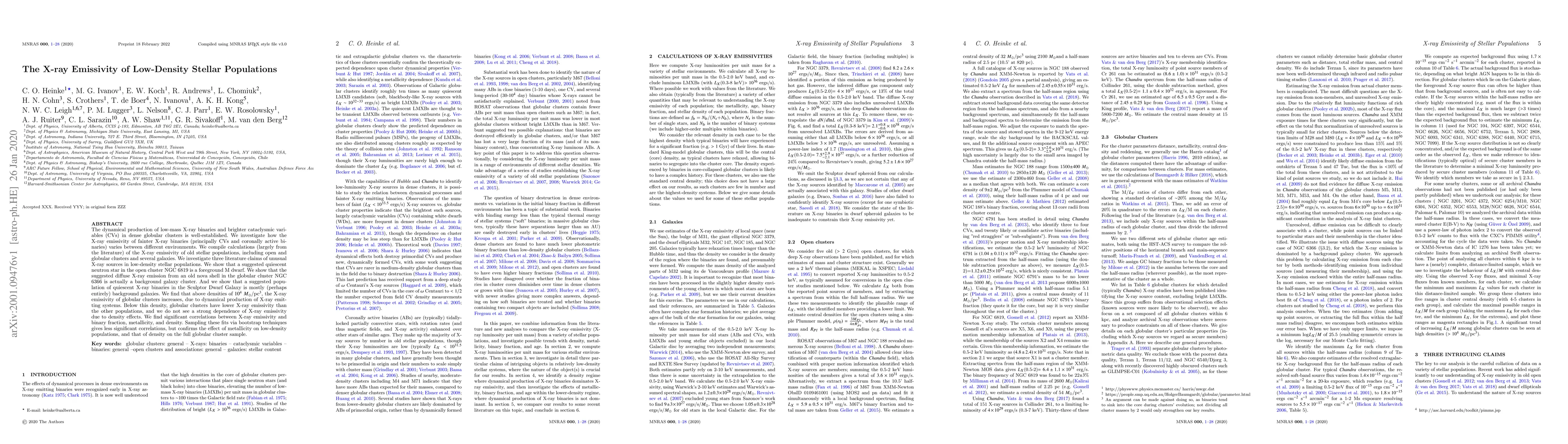 This paper examines the X-ray emissivity of fainter X-ray binaries in various low-density stellar environments, finding that above densities of $10^4$ M$_{\odot}$/pc$^3$, globular clusters show higher X-ray emissivity due to dynamical production of X-ray emitting systems. It debunks claims of unusual X-ray sources in low-density populations and highlights correlations between X-ray emissivity and binary fraction, metallicity, and density.