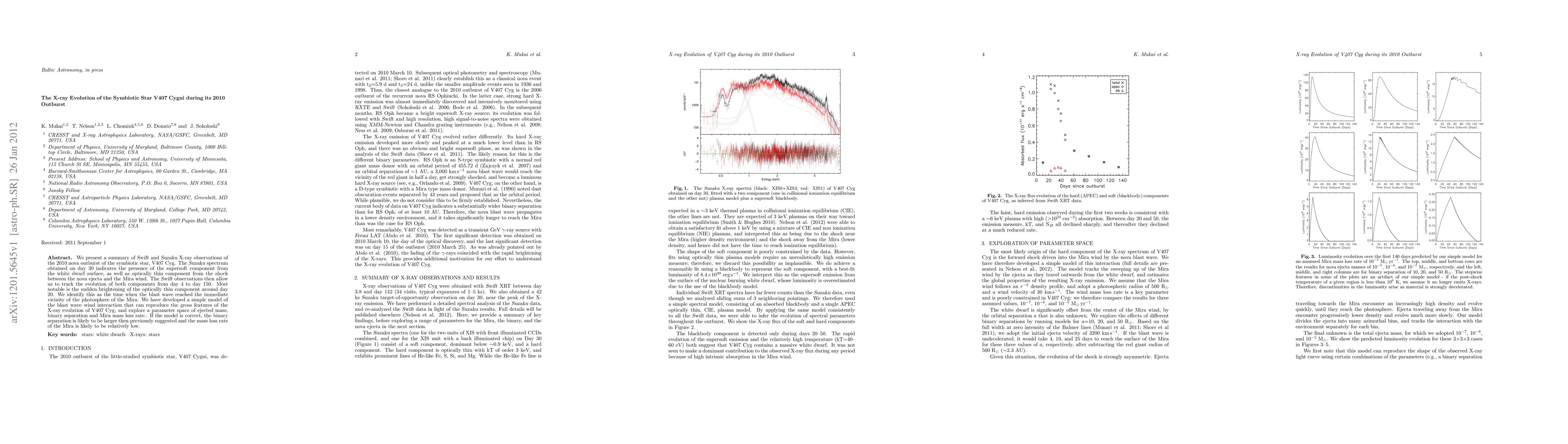 The X-ray evolution of symbiotic star V407 Cygni was studied using Swift and Suzaku observations during its 2010 outburst. The research identified a sudden brightening in the optically thin component at day 20, suggesting a blast wave interacting with the Mira wind.