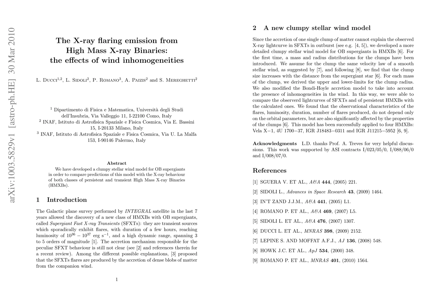 Summary: This paper introduces a clumpy stellar wind model for OB supergiants to analyze X-ray flaring emissions in High Mass X-ray Binaries, comparing model predictions with observed behaviors in persistent and transient HMXBs. The study focuses on the impact of wind inhomogeneities on X-ray emissions.