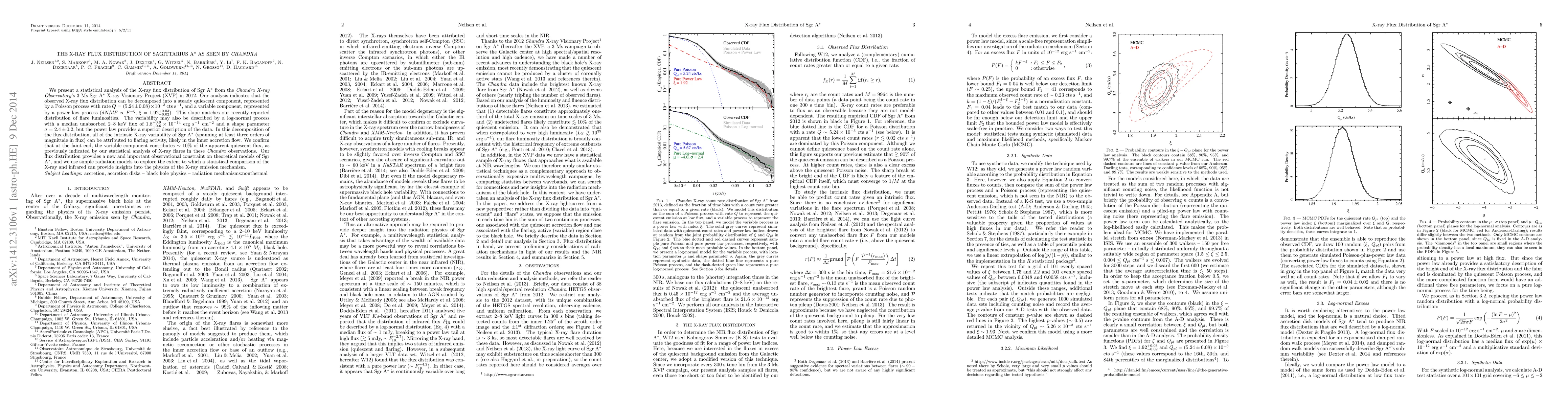 We present a statistical analysis of the X-ray flux distribution of Sgr A* from the Chandra X-ray Observatory's 3 Ms Sgr A* X-ray Visionary Project (XVP) in 2012. Our analysis indicates that the observed X-ray flux distribution can be decomposed into a steady quiescent component, represented by a Poisson process with rate $Q=(5.24\pm0.08)\times10^{-3}$ cts s$^{-1},$ and a variable component, represented by a power law process ($dN/dF\propto F^{-\xi},$ $\xi=1.92_{-0.02}^{+0.03}$). This slope matches our recently-reported distribution of flare luminosities. The variability may also be described by a log-normal process with a median unabsorbed 2-8 keV flux of $1.8^{+0.9}_{-0.6}\times10^{-14}$ erg s$^{-1}$ cm$^{-2}$ and a shape parameter $\sigma=2.4\pm0.2,$ but the power law provides a superior description of the data. In this decomposition of the flux distribution, all of the intrinsic X-ray variability of Sgr A* (spanning at least three orders of magnitude in flux) can be attributed to flaring activity, likely in the inner accretion flow. We confirm that at the faint end, the variable component contributes ~10% of the apparent quiescent flux, as previously indicated by our statistical analysis of X-ray flares in these Chandra observations. Our flux distribution provides a new and important observational constraint on theoretical models of Sgr A*, and we use simple radiation models to explore the extent to which a statistical comparison of the X-ray and infrared can provide insights into the physics of the X-ray emission mechanism.