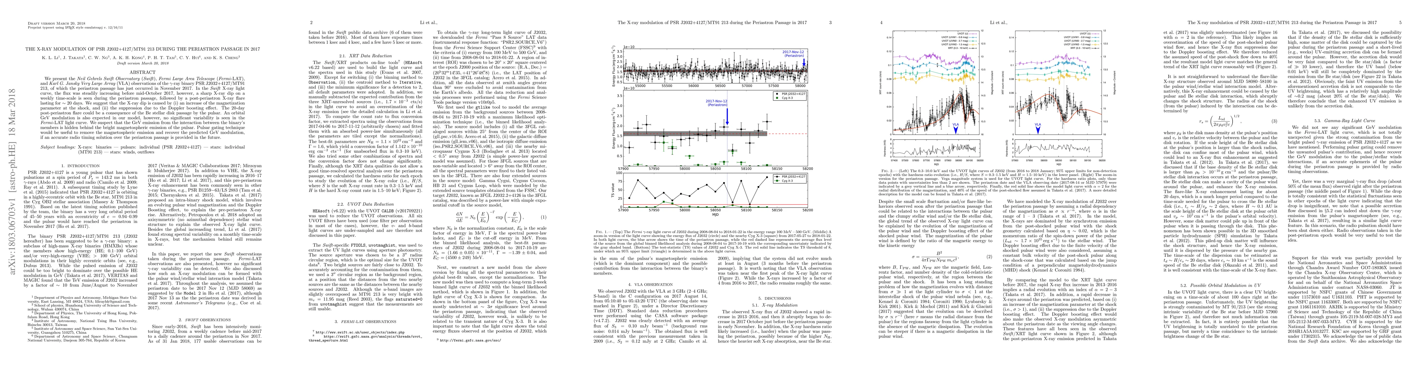 This paper reports on X-ray observations of the gamma-ray binary PSR J2032+4127/MT91 213 during its 2017 periastron passage, noting a sharp X-ray dip and a subsequent 20-day flare, suggesting the dip is due to increased magnetization and Doppler boosting suppression, while the flare may result from the pulsar's interaction with the Be star's disk.