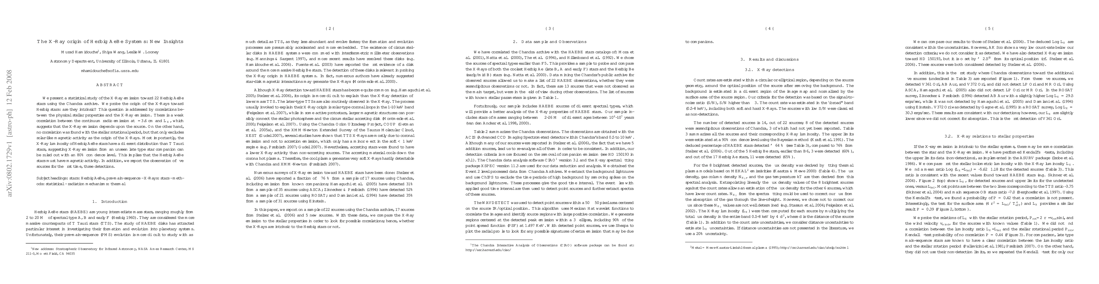 We present a statistical study of the X-Ray emission toward 22 Herbig AeBe stars using the Chandra archive. We probe the origin of the X-Rays toward Herbig stars: are they intrinsic? This question is addressed by correlations between the physical stellar properties and the X-Ray emission. There is a weak correlation between the continuum radio emission at lambda = 3.6cm and Lx, which suggests that the X-Ray emission depends upon the source. On the other hand, no correlation was found with the stellar rotational period, but that only excludes solar-like magnetic activity as the origin of the X-Rays. Most importantly, the X-Ray luminosity of Herbig AeBe stars have a different distribution than T Tauri stars, suggesting X-Ray emission from an unseen late type star companion can be ruled out with an 80% confidence level. This implies that the Herbig AeBe stars must have magnetic activity. In addition, we report the observation of five sources for the first time, three detections.