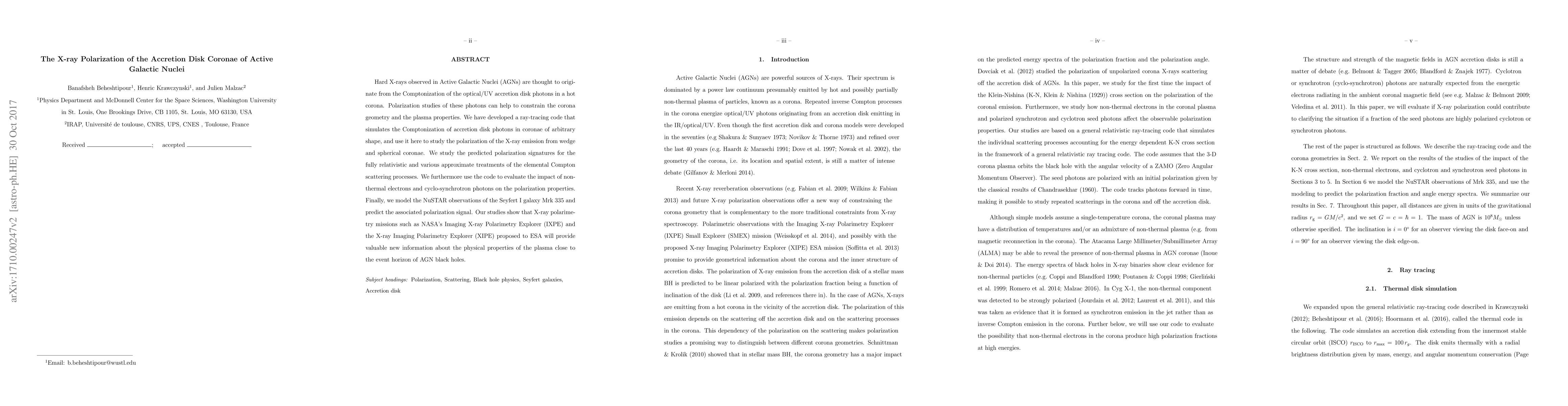 This paper develops a ray-tracing code to simulate X-ray polarization from AGN coronae, predicting polarization signatures for different corona geometries and plasma conditions, and modeling observations of Mrk 335. It concludes that upcoming X-ray polarimetry missions will yield crucial insights into the plasma near AGN black holes.