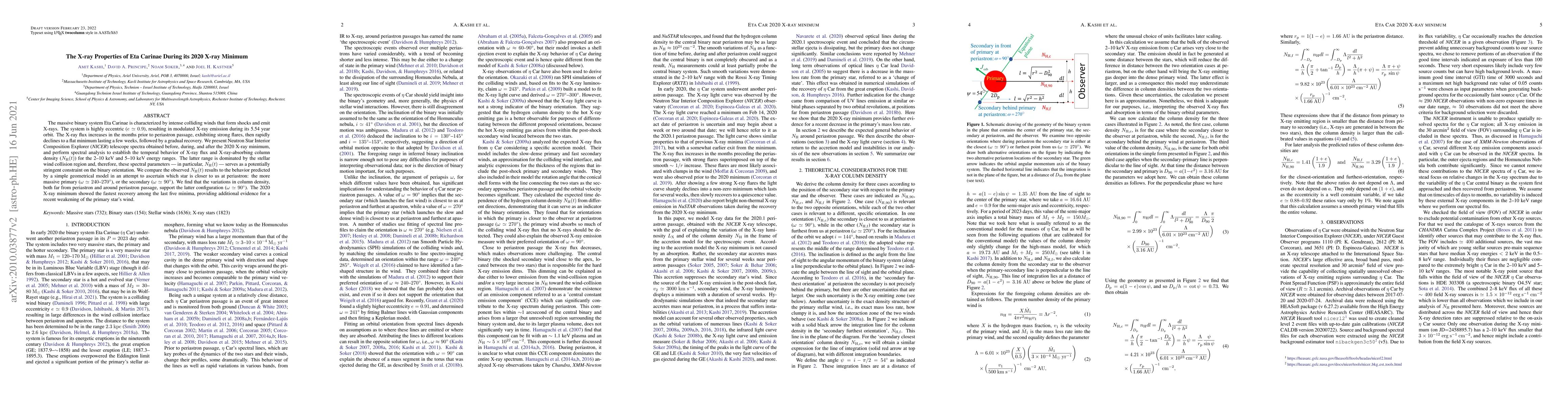 This paper analyzes the X-ray properties of Eta Carinae during its 2020 minimum using NICER data, revealing a rapid recovery and strong flares. Spectral analysis indicates that the variations in X-ray-absorbing column density support the secondary star being closer to us at periastron, suggesting a recent weakening of the primary star's wind.
