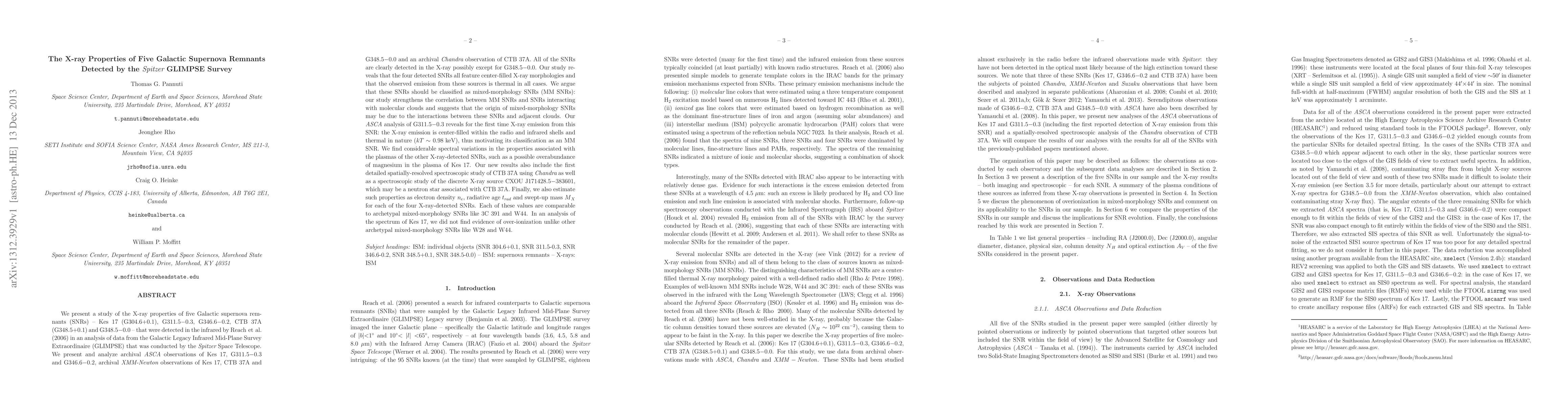 (Abbreviated) We present a study of the X-ray properties of five Galactic supernova remnants (SNRs) -- Kes 17 (G304.6$+$0.1), G311.5$-$0.3, G346.6$-$0.2, CTB 37A (G348.5$+$0.1) and G348.5$-$0.0 -- that were detected in the infrared by Reach et al. (2006) in an analysis of data from the Galactic Legacy Infrared Mid-Plane Survey Extraordinaire (GLIMPSE) that was conducted by the Spitzer Space Telescope. We present and analyze archival ASCA observations of Kes 17, G311.5$-$0.3 and G346.6$-$0.2, archival XMM-Newton observations of Kes 17, CTB 37A and G348.5$-$0.0 and an archival Chandra observation of CTB 37A. All of the SNRs are clearly detected in the X-ray possibly except for G348.5$-$0.0. Our study reveals that the four detected SNRs all feature center-filled X-ray morphologies and that the observed emission from these sources is thermal in all cases. We argue that these SNRs should be classified as mixed-morphology SNRs (MM SNRs): our study strengthens the correlation between MM SNRs and SNRs interacting with molecular clouds and suggests that the origin of mixed-morphology SNRs may be due to the interactions between these SNRs and adjacent clouds. Our ASCA analysis of G311.5$-$0.3 reveals for the first time X-ray emission from this SNR: the X-ray emission is center-filled within the radio and infrared shells and thermal in nature ($kT$ $\sim$ 0.98 keV), thus motivating its classification as an MM SNR. We find considerable spectral variations in the properties associated with the plasmas of the other X-ray-detected SNRs, such as a possible overabundance of magnesium in the plasma of Kes 17. Finally, we also estimate such properties as electron density $n$$_e$, radiative age $t$$_{rad}$ and swept-up mass $M$$_X$ for each of the four X-ray-detected SNRs.