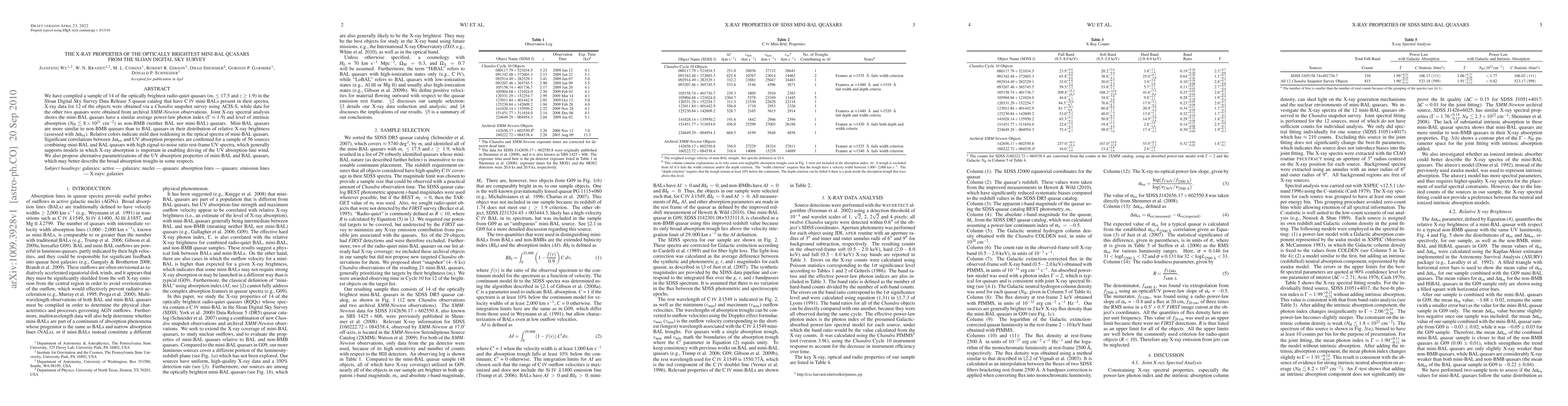 This study analyzes the X-ray properties of 14 optically brightest mini-BAL quasars from the SDSS, finding that they exhibit similar X-ray characteristics to non-BAL quasars, with a power-law photon index of around 1.9 and low intrinsic absorption levels. The research also confirms correlations between X-ray absorption and UV absorption properties, supporting models of wind driving in these quasars.