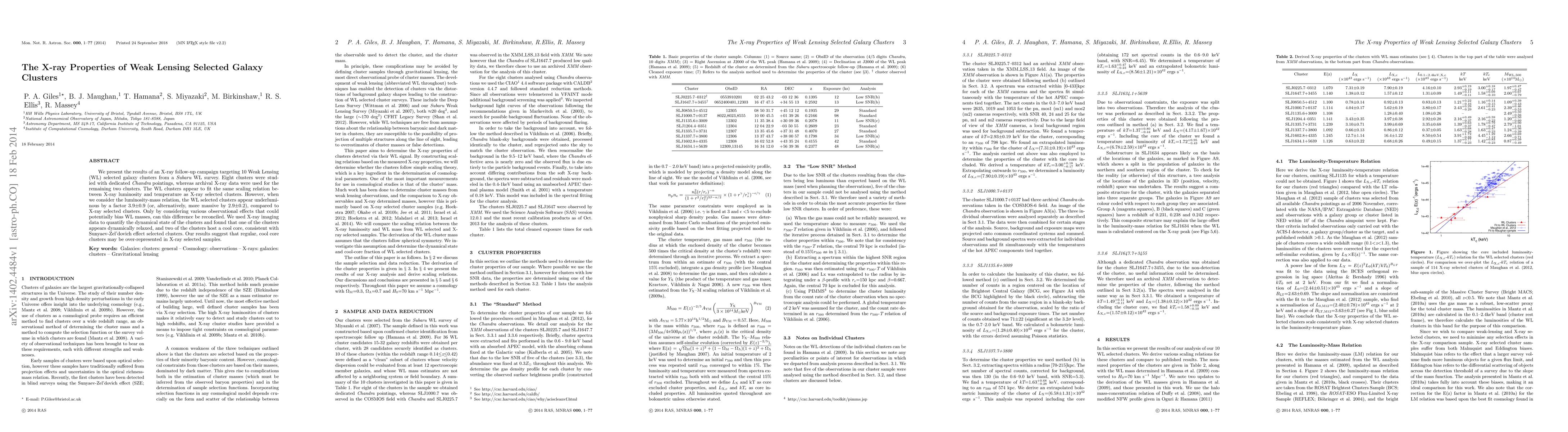 This study compares the X-ray properties of Weak Lensing selected galaxy clusters to those of X-ray selected clusters, finding that WL clusters are underluminous and potentially more massive. The analysis suggests that observational biases and the presence of cool cores may explain these discrepancies.