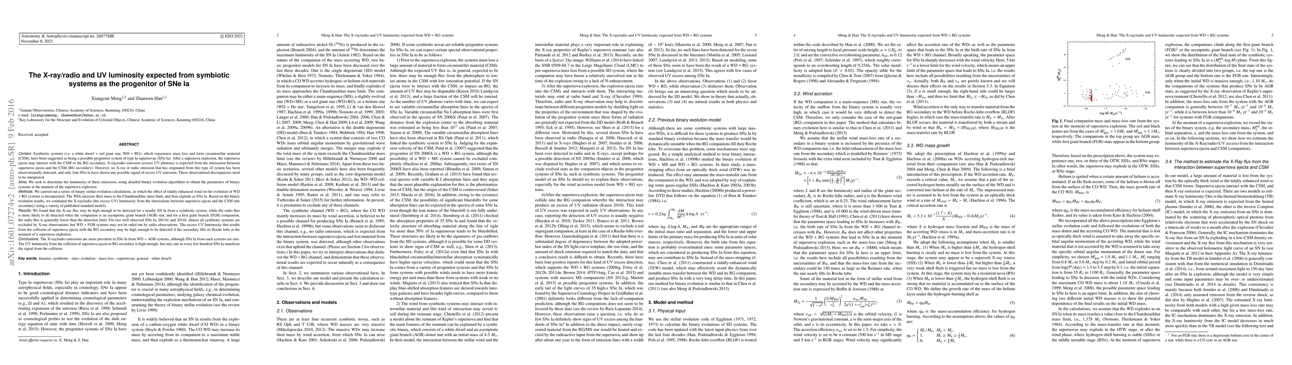 This paper investigates the X-ray/radio and UV luminosity from symbiotic systems, which are potential progenitors of Type Ia supernovae (SNe Ia). The study finds that X-ray emissions may be detectable from nearby SNe Ia originating from these systems, while radio emissions are more likely from systems with an asymptotic giant branch companion.