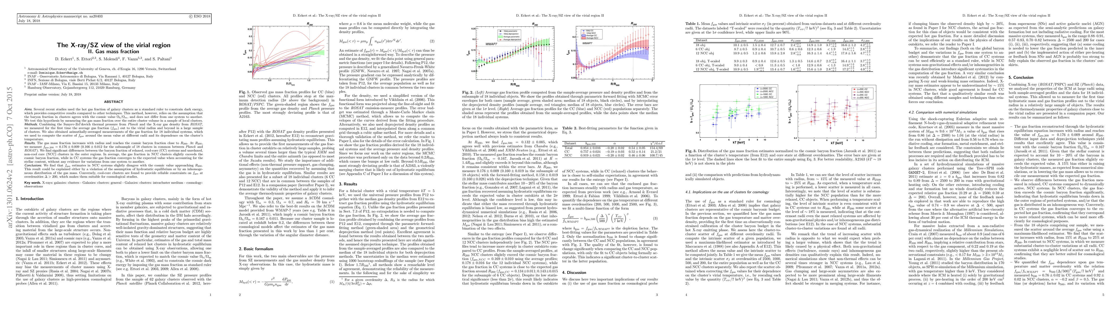 Several recent studies used the hot gas fraction of galaxy clusters as a standard ruler to constrain dark energy, which provides competitive results compared to other techniques. This method, however, relies on the assumption that the baryon fraction in clusters agrees with the cosmic value Omega_b/Omega_m, and does not differ from one system to another. We test this hypothesis by measuring the gas mass fraction over the entire cluster volume in a sample of local clusters. Combining the SZ thermal pressure from Planck and the X-ray gas density from ROSAT, we measured for the first time the average gas fraction (fgas) out to the virial radius and beyond in a large sample of clusters. We also obtained azimuthally-averaged measurements of the gas fraction for 18 individual systems, which we used to compute the scatter of fgas around the mean value at different radii and its dependence on the cluster's temperature. The gas mass fraction increases with radius and reaches the cosmic baryon fraction close to R200. At R200, we measure fgas,200=0.176+/-0.009. We find significant differences between the baryon fraction of relaxed, cool-core (CC) systems and unrelaxed, non-cool core (NCC) clusters in the outer regions. In average, the gas fraction in NCC clusters slightly exceeds the cosmic baryon fraction, while in CC systems the gas fraction converges to the expected value when accounting for the stellar content, without any evidence for variations from one system to another. We find that fgas estimates in NCC systems slightly disagree with the cosmic value approaching R200. This result could be explained either by a violation of the assumption of hydrostatic equilibrium or by an inhomogeneous distribution of the gas mass. Conversely, cool-core clusters are found to provide reliable constraints on fgas at overdensities >200, which makes them suitable for cosmological studies.