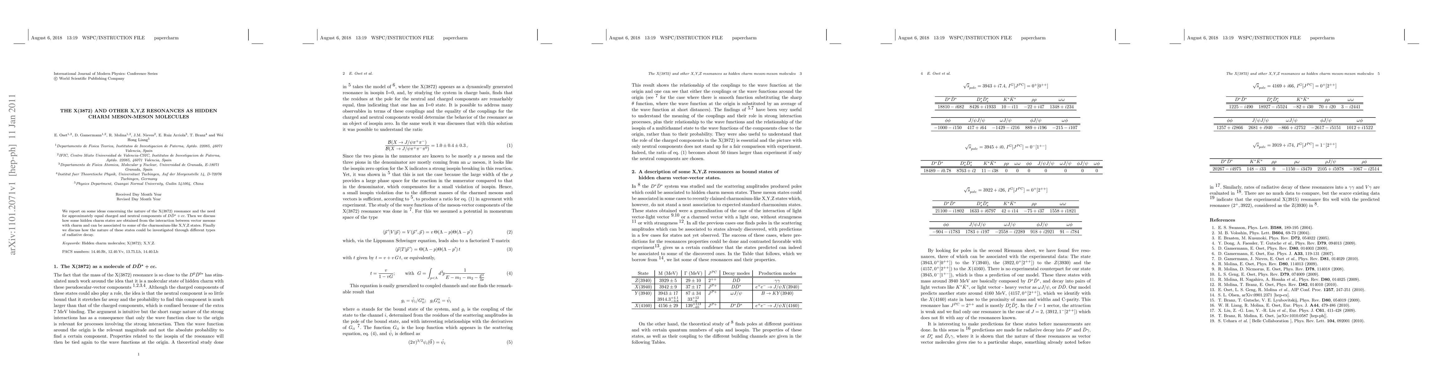 We report on some ideas concerning the nature of the X(3872) resonance and the need for approximately equal charged and neutral components of $D \bar{D}^* +cc$. Then we discuss how some hidden charm states are obtained from the interaction between vector mesons with charm and can be associated to some of the charmonium-like X,Y,Z states. Finally we discuss how the nature of these states could be investigated through different types of radiative decay.