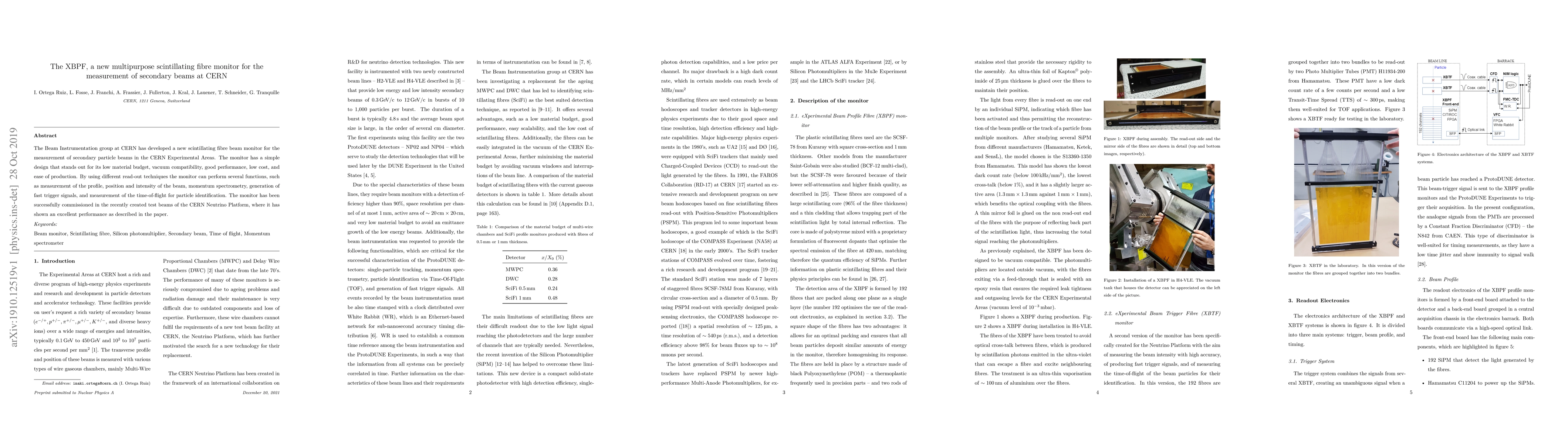The XBPF is a new versatile scintillating fibre monitor developed by CERN for measuring secondary particle beams, featuring low material budget, vacuum compatibility, and multi-functionality including beam profiling and time-of-flight measurements. It has been successfully deployed in the CERN Neutrino Platform test beams.