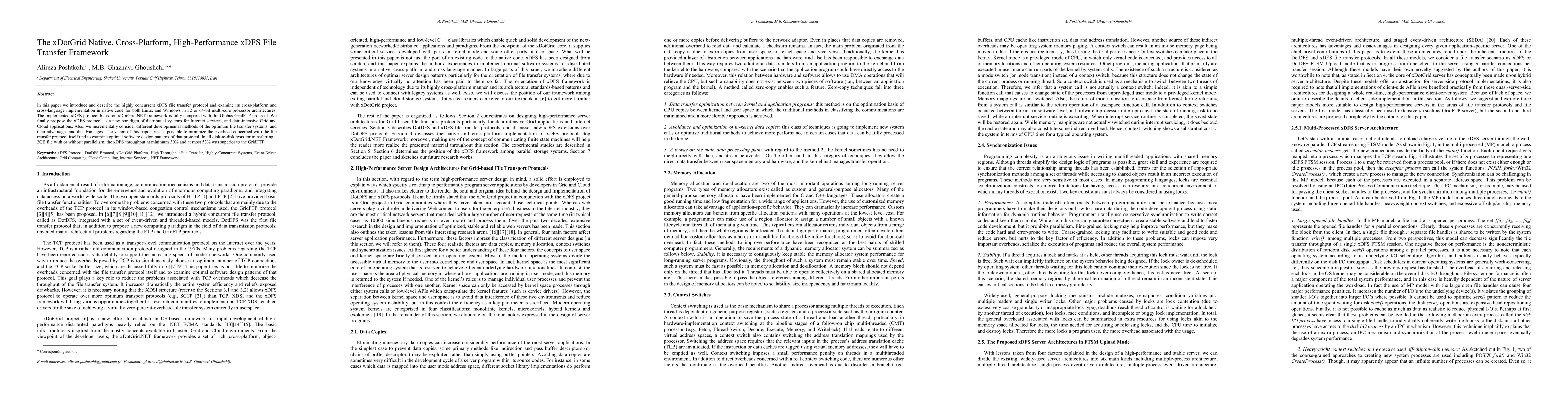 In this paper we introduce and describe the highly concurrent xDFS file transfer protocol and examine its cross-platform and cross-language implementation in native code for both Linux and Windows in 32 or 64-bit multi-core processor architectures. The implemented xDFS protocol based on xDotGrid.NET framework is fully compared with the Globus GridFTP protocol. We finally propose the xDFS protocol as a new paradigm of distributed systems for Internet services, and data-intensive Grid and Cloud applications. Also, we incrementally consider different developmental methods of the optimum file transfer systems, and their advantages and disadvantages. The vision of this paper tries as possible to minimize the overhead concerned with the file transfer protocol itself and to examine optimal software design patterns of that protocol. In all disk-to-disk tests for transferring a 2GB file with or without parallelism, the xDFS throughput at minimum 30% and at most 53% was superior to the GridFTP.